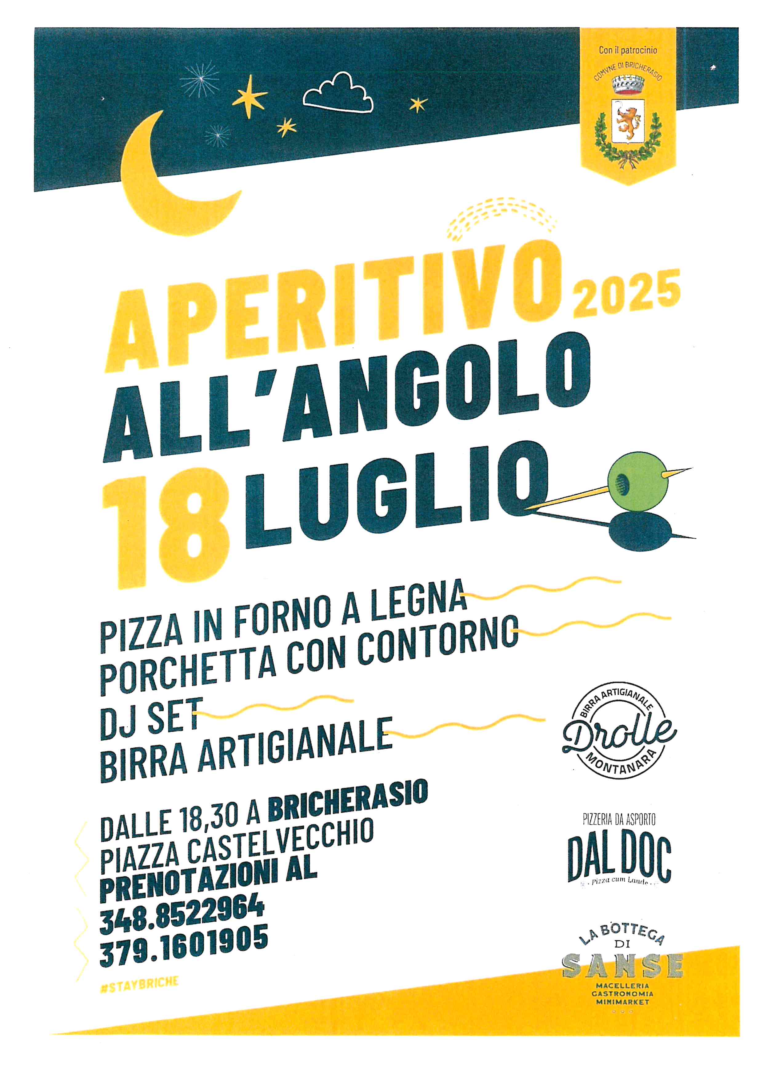 La Pizzeria Dal Doc e il Birrificio Drolle invitano tutti a partecipare all'Aperttivo all'angolo dalle ore 18,30 di venerdì 18 per gustare pizze cotte in forno a legna e porchetta con contorno. Per informazioni e prenotazioni, consigliate, del tavolo si devono chiamare i numeri 348 8522964 oppure 379 1601905.
