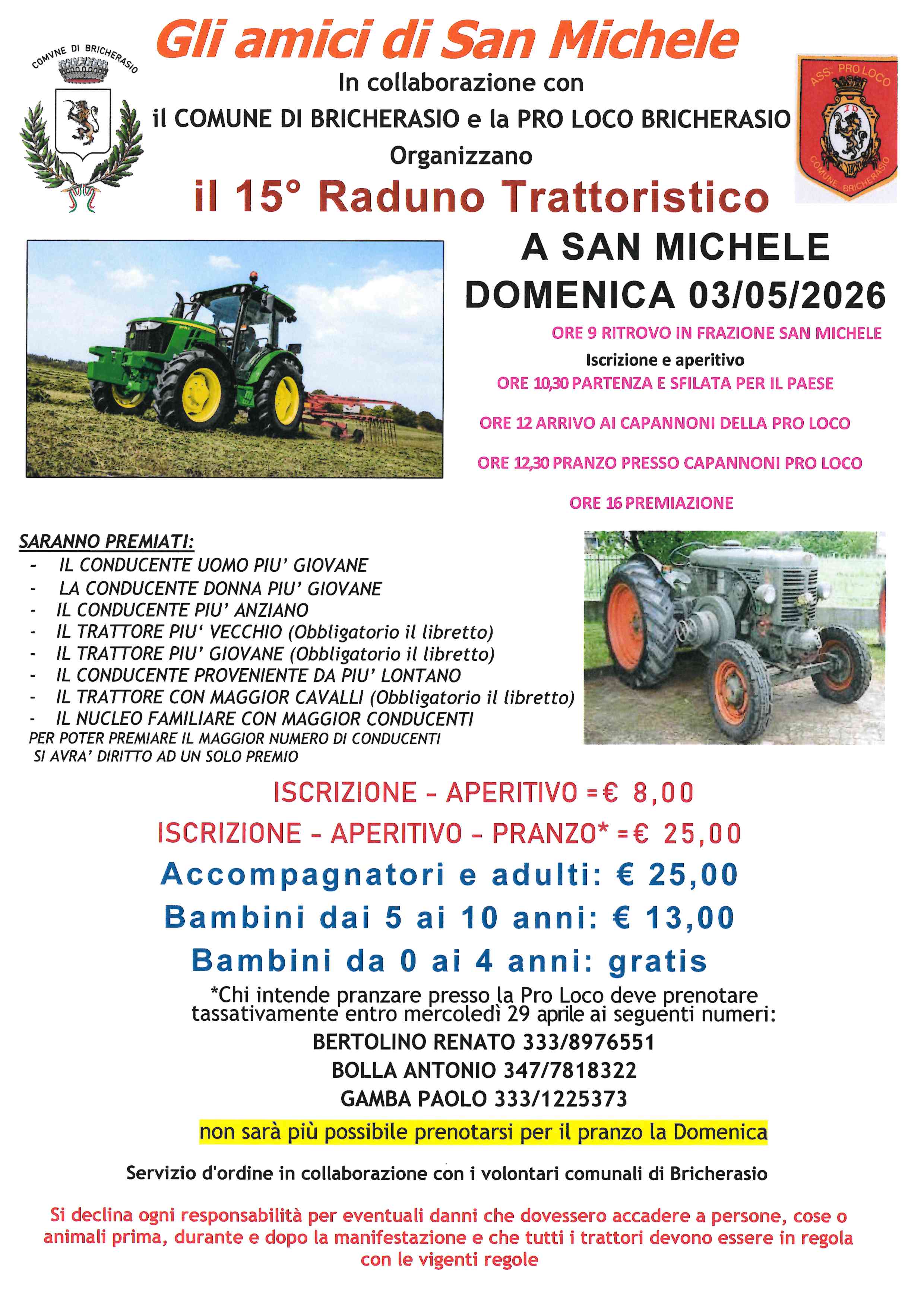 A Bricherasio domenica 3 maggio ritorna la Festa di Primavera con il raduno trattoristico, in partenza dalla frazione S.Michele ed il pranzo campagnolo presso la sede della Pro Loco (P.za don Vittorio Morero 4). Organizza la Pro Loco di Bricherasio con la collaborazione degli Amici di San Michele ed il supporto dei volontari comunali.