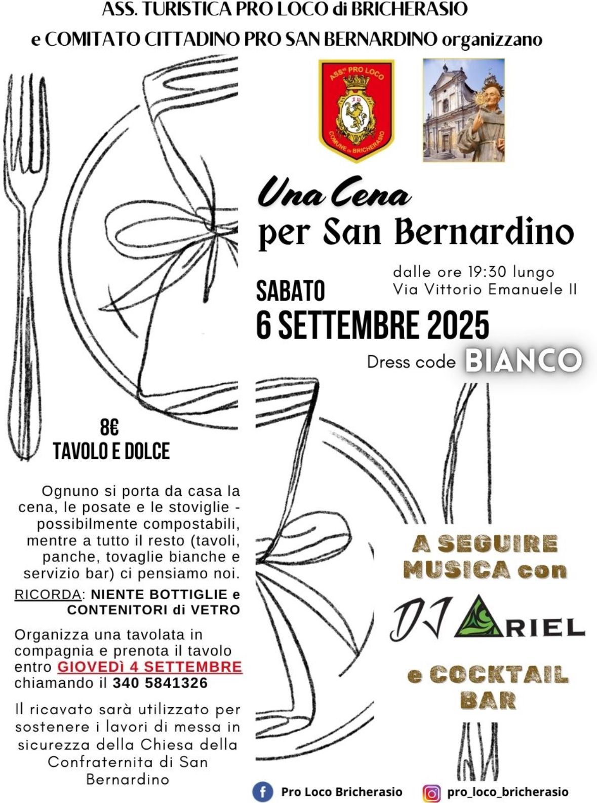La Sagra dell'Uva di Bricherasio, nel più ampio contesto del "Settembre Bricherasiese" giunge nel 2025 alla sua 57° edizione. Al consueto ricco programma di eventi culturali, enogastronomici, musicali e sportivi si aggiunge quest'anno il ricordo dei 700 anni dalla fondazione della "Villanova" di Bricherasio, ovvero l'edificazione del nuovo abitato medievale, nella sede attuale, su iniziativa del principe Filippo d'Acaia. Gruppi, esibizioni, giochi e rievocazioni storiche a tema medievale arricchiranno così il lungo mese di settembre, da sempre dedicato alla festa per i prodotti della terra e per la vendemmia. Qui di seguito il programma completo, in graduale aggiornamento, e lelocandine specifiche dei vari eventi previsti.