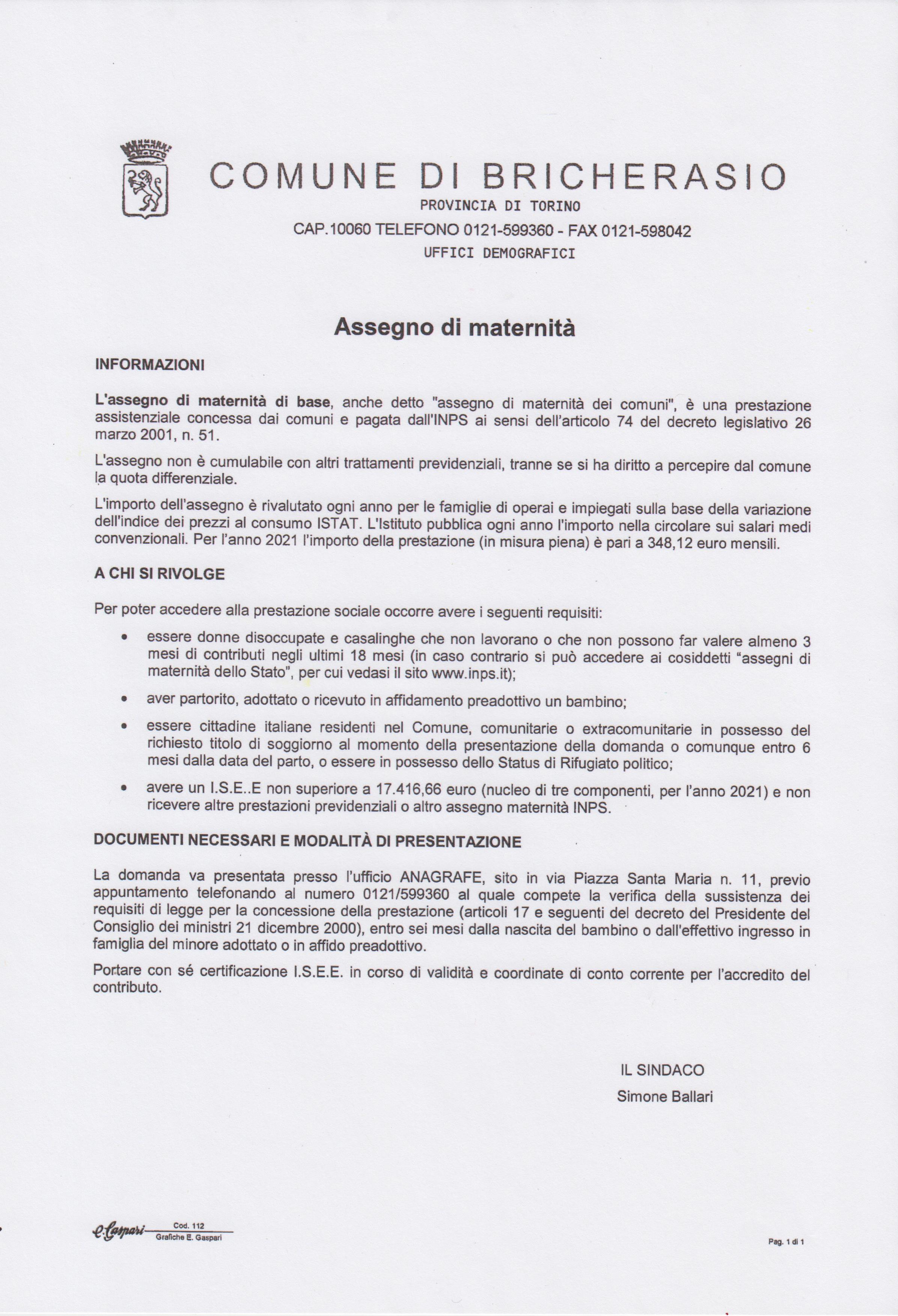 Modalità e termini per l'erogazione dell'assegno di maternità, annualità 2021.