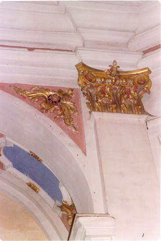 Structural description: Eighteenth century construction in Baroque style in longitudinal axis, with an unique aisle and a cupola standing above the abse zone. In the interior you can find an interesting tribune, a wooden choir balustrade. The walls are divided in lesenes and enriched by exquiste golden plasters, two chapels in quadriangular shape, whith the altars attached to the external walls expanding on the outside. The bell tower is square shaped and tripartite, enriched in frames surmounted by a bell cell and by a little cupola.