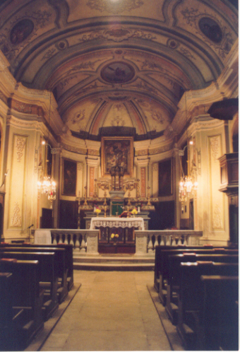 The chancel area, separated by a marble balustrade, is covered by a vault frescoed apse enriched by curbs.
