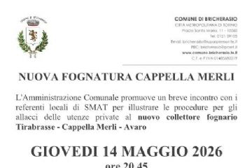 Incontro pubblico in frazione Cappella Merli su procedure SMAT per allaccio a nuova fognatura