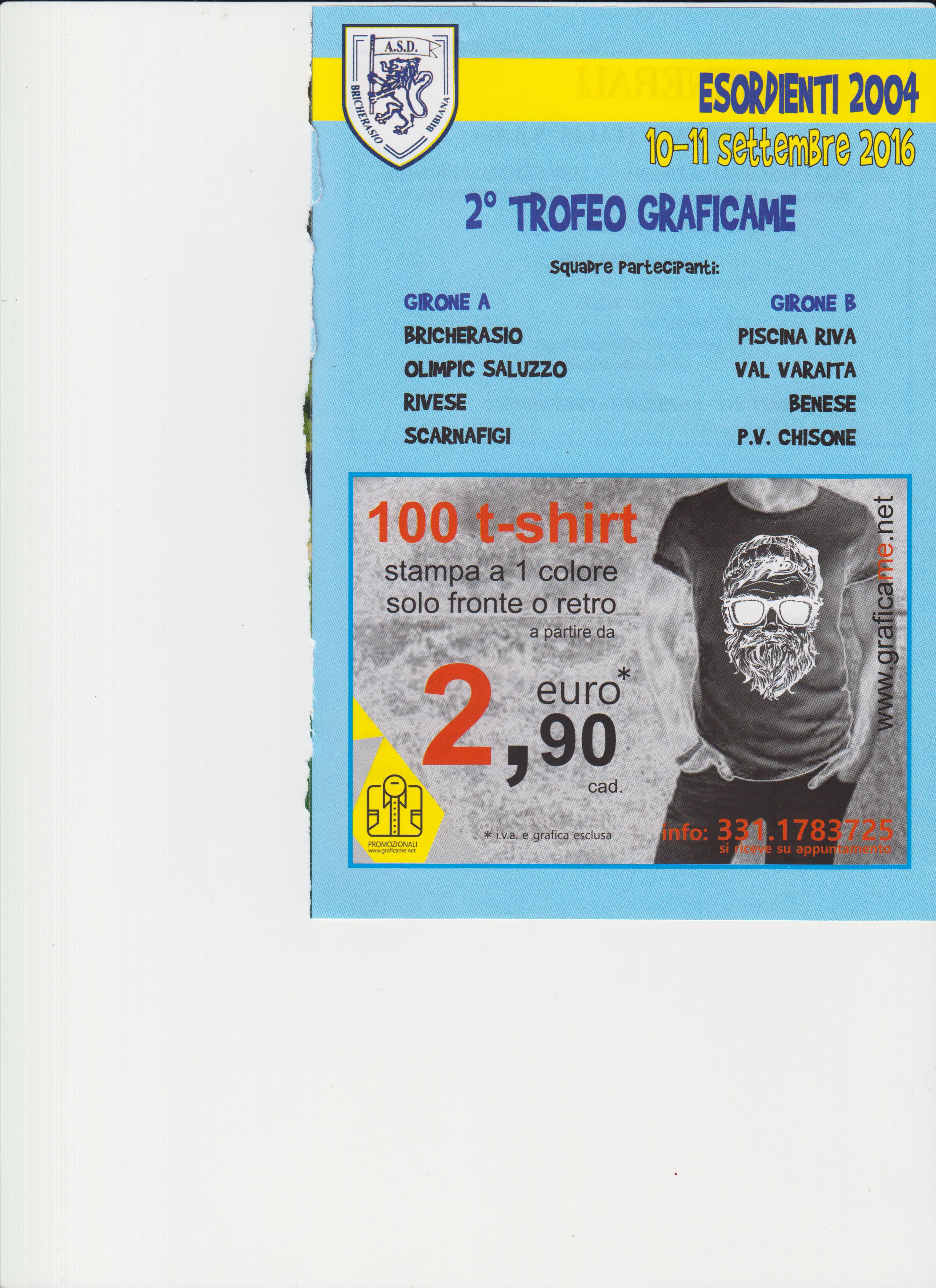 Nel weekend del 10 e 11 settembre continua la 26° edizione del torneo giovanile di calcio “Comune di Bricherasio” per le categorie Piccoli Amici 2009/2010, Primi Calci 2008 ed Esordienti 2004. Numeri sempre più importanti caratterizzano una manifestazione organizzata da oltre cinque lustri dalla società Bricherasio/Bibiana, un tradizionale ritrovo di giovani calciatori inserito nel programma della 48° Sagra dell’Uva, i cui ingredienti essenziali sono entusiasmo e voglia di partecipare. Anche in questo weekend, dell'importante kermesse di calcio giovanile, saranno presenti otto squadre per ogni categoria. La manifestazione ha la particolarità che è un appuntamento importante cresciuto qualitativamente di anno in anno e che si rinnova dal 1991 e permette di avere prestigio e visibilità. Al Calleri di Sala di Bricherasio infilano le scarpette bullonate nella categoria Primi calci nati nel 2008 a 5 giocatori i padroni di casa del Bricherasio/Bibiana con Candiolo, Perosa e Val Varaita nel girone A mentre Progetto Val Chisone, Cumiana, Airaschese e Scarnafigi giocano nel girone B e si contendono il 1^ Trofeo "Al Cartoccio". Nella manifestazione Piccoli Amici che giocano il quinto Trofeo “Cristal” tra le compagini iscritte con il Bricherasio/Bibiana ci sono Cumiana, Rivese e Luserna nel primo girone e Scarnafigi, Villar Perosa, Cavour e Chisola nel secondo. Gi Esordienti 2004 competono per il secondo trofeo "GraficaMe" e giocano a Campiglione Fenile: con la società organizzatrice del Bricherasio/Bibiana scendono sul terreno di gioco Rivese, Olimpic Saluzzo e Scarnafigi nel primo girone e Progetto Val Chisone, Benese, Val Varaita e Piscinese Riva.Calcio d’inizio alle ore 15.