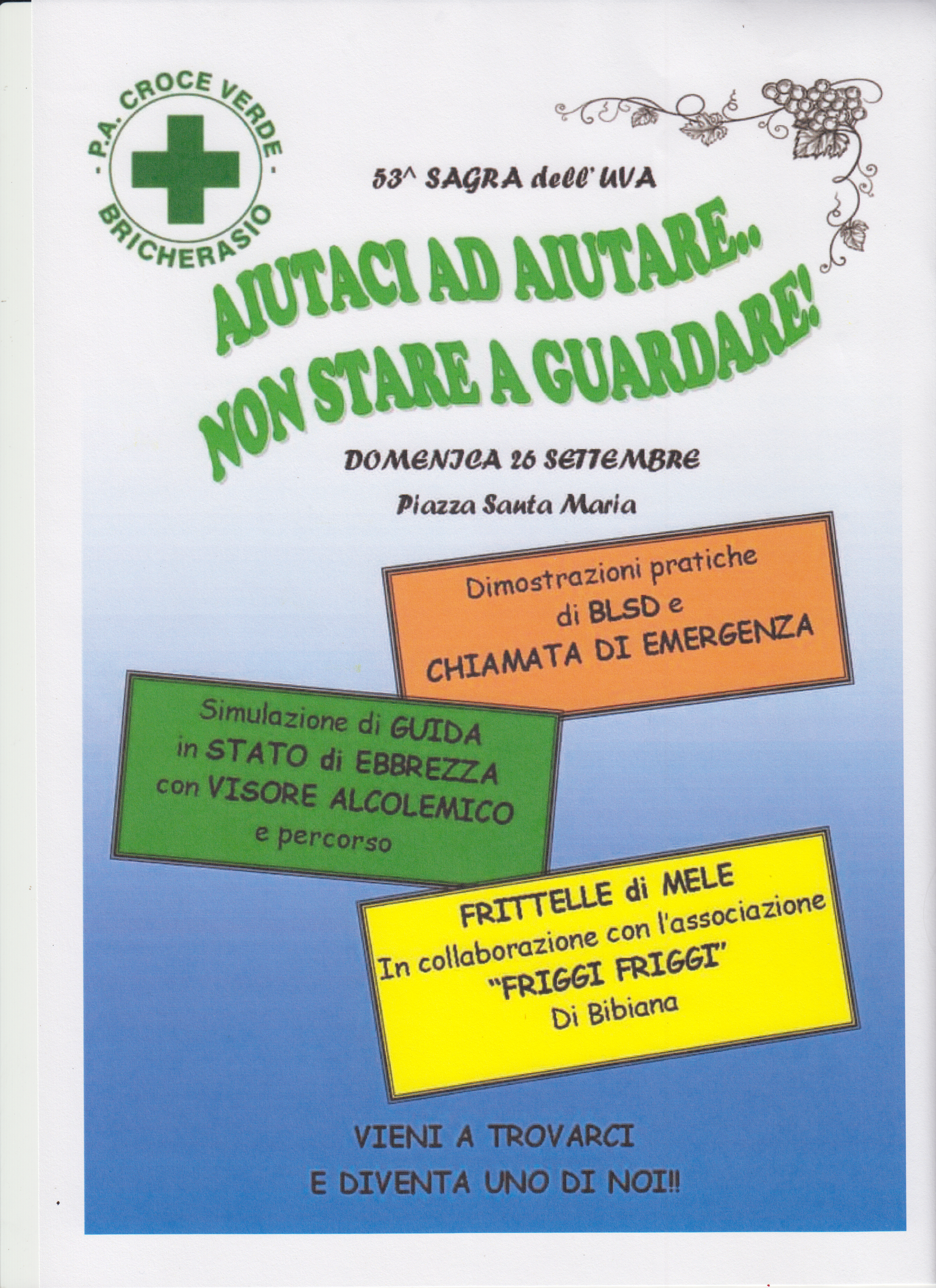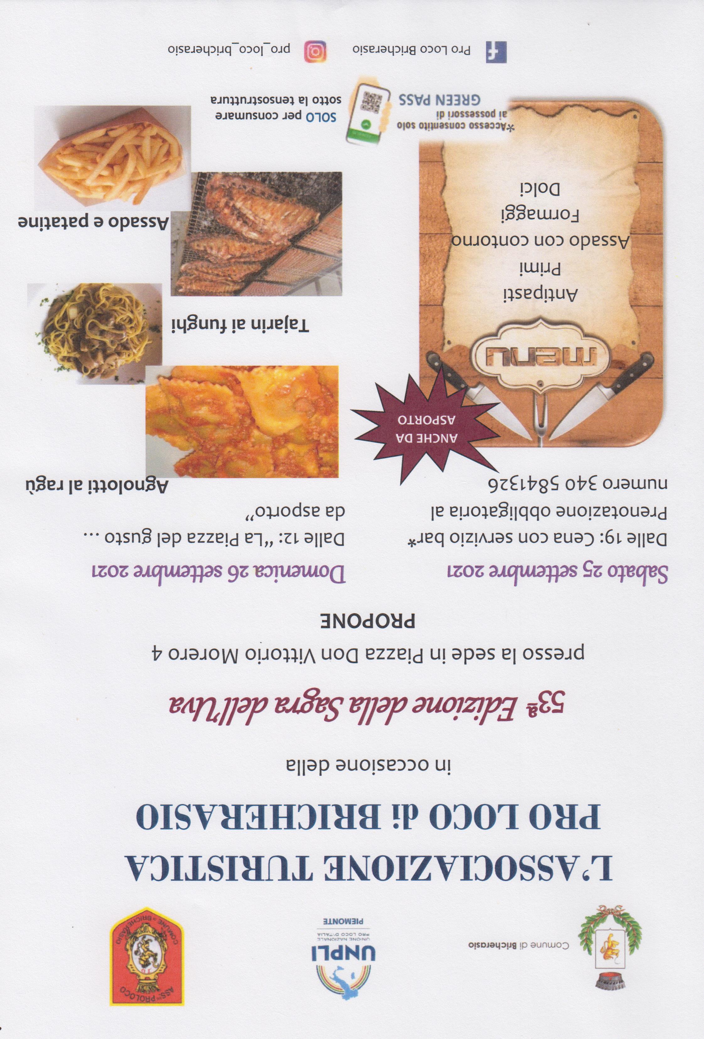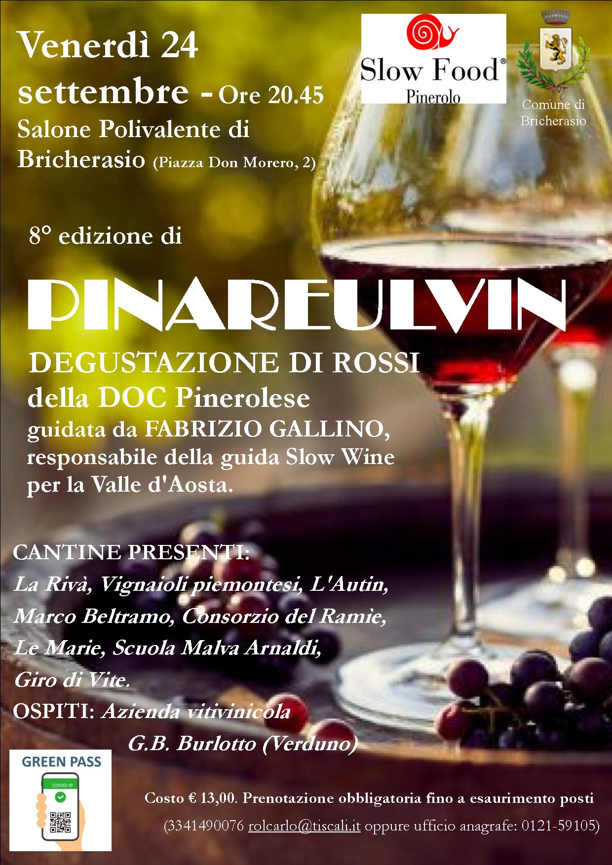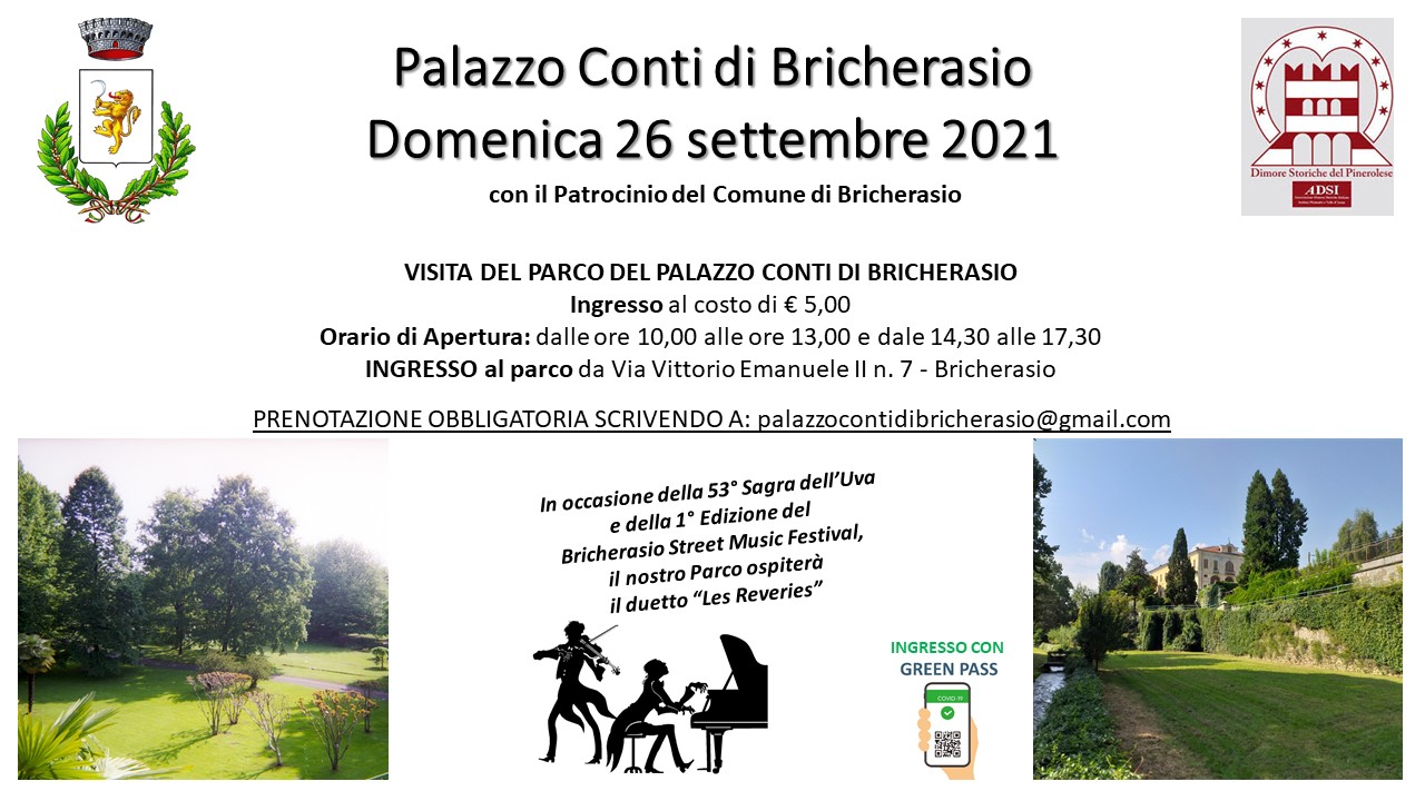 Nonostante l'emergenza causata dal Covid 19, non si può rinunciare a celebrare l'uva, il frutto per eccellenza della terra bricherasiese. Il Sindaco Simone Ballari dice “Il perdurare dell'emergenza Covid-19 e le misure relative hanno costretto vari organizzatori ed in modo particolare la Pro Loco a cancellare alcuni appuntamenti enogastronomici ormai tradizionali. La volontà di celebrare il prodotto viticolo e frutticolo, eccellenza del nostro territorio, viene mantenuta, pur in un anno difficile anche per i danni causati alle coltivazioni dalle gelate tardive dello scorso aprile, e vedrà il suo culmine nell'esposizione dei prodotti locali”. Conclude il suo intervento “Una novità nel programma delle manifestazioni è inoltre rappresentata dalla 1°edizione del Bricherasio Street Festival con vari gruppi musicali, di generi diversi, che si esibiranno per le vie e le piazze del paese durante la giornata di domenica 26/9 fornendo la giusta colonna sonora alla manifestazione”. Il neo presidente della Pro Loco, Alberto Godino, ribadisce l’antichità delle origini della festa risalenti allo scorso secolo e che “Nonostante le restrizioni legate al Covid la squadra della Pro Loco ha mantenuto attiva la tradizione con la collaborazione del Comune e delle altre associazioni del paese. Abbiamo lavorato a lungo per stilare un programma che rispetti le attuali norme cercando di evitare quelle manifestazioni nelle quali difficilmente si sarebbero rispettate ma siamo sicuri nella comprensione e nel rispetto di tali norme dei partecipanti”. Il paese fa da cornice ad una festa all’insegna di cibo, buon vino, musica e spettacoli. Tutte le manifestazioni si svolgeranno nel rispetto e nell’osservanza degli adempimenti in materia igienico sanitaria atti a prevenire la diffusione del virus, fra cui naturalmente l’obbligo di indossare la mascherina e l'esibizione del Green Pass in caso di eventi al chiuso e/o ad accesso contingentato.