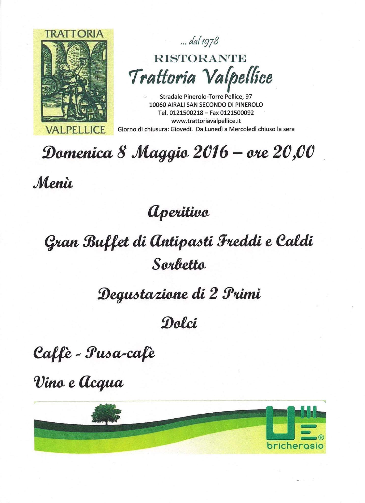 L’Università delle Tre Età di Bricherasio, conclusa l’attività del 18º anno accademico, festeggia con la Cena Sociale in programma Domenica 8 maggio alle ore 20.00 presso la Trattoria Val Pellice di San Secondo di Pinerolo. Un modo piacevole per concludere l’Anno Accademico 2015-2016. La realtà è in continua evoluzione, aumentano sia le materie proposte e le conferenze sia gli allievi che mostrano grande interesse e partecipazione. Per valutare insieme il lavoro svolto e per impostare quello del prossimo anno il Direttivo dell’Unitrè ha organizzato l’open buffet con la partecipazione dei docenti. Informazioni e prenotazioni entro martedì 3 maggio presso Schena Giuseppe allo 0121/598068, Bogiatto Carla 0121/598509 e Falco Enrica 329/7720410 e si ricorda che all’indirizzo http://www.unitrebricherasio.it si possono reperire informazioni utili sull’attività dell’Associazione di Bricherasio. Costo per i soci 23 € e per coloro sprovvisti di tessera 25 €.