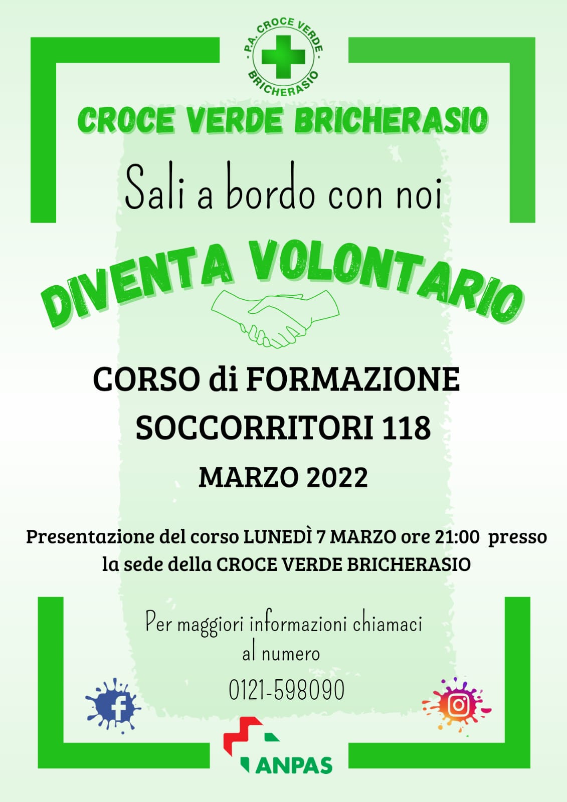 La Croce Verde di Bricherasio sente il bisogno di forze fresche con la speranza di trovare tante persone giovani e meno giovani che si vogliano impegnare in questa avventura, faticosa ma stimolante e piena di soddisfazioni. Si promuove quindi un nuovo corso di formazione da soccorittore del 118 “Sali a bordo con noi”, previsto per marzo presso la sede bricherasiese della Croce Verde. Per diventare volontario non sono necessarie doti o attitudini particolari, è sufficiente avere buona volontà, avere compiuto il 18° anno di età (in Croce Verde sono necessari anche telefonisti, barellieri o autisti di ambulanza). La presentazione del corso nella sede della Croce Verde di Bricherasio di Via XXV Aprile è prevista lunedì 7 marzo alle ore 21. Infine tutti i giovedì dalle ore 8 alle 12 i volontari aspettano i cittadini al mercato per la sottoscrizione della tessera annuale per sostenere l’Associazione no profit. Con un piccolo contributo si aiuta ad assicurare un servizio indispensabile sul territorio ed a sostenere il volontariato. Per qualsiasi informazione contattare la Croce Verde di Bricherasio al numero 0121/598090.