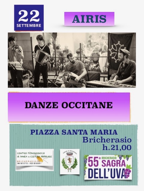 Venerdì 22 settembre, alle ore 21 ballo Occitano con il gruppo Airis a cura del Centro Pedagogico di Danza e Cultura Popolare in Piazza Santa Maria
