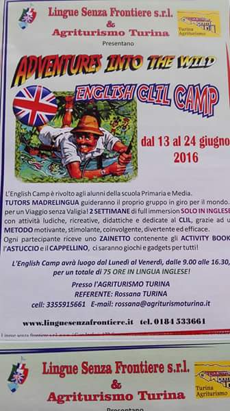 Scadono martedì 31 maggio le iscrizioni all'English Clil Camp, organizzato dall’agriturismo Turina di Bricherasio. Il corso di inglese Clil (acronimo di Content and Language Integrated Learning, ovvero "apprendimento integrato di contenuti disciplinari in lingua straniera veicolare") è rivolto agli alunni delle scuole primaria e secondaria, e si terrà dal 13 al 24 giugno presso il medesimo agriturismo bricherasiese, in Strada Tagliarea, 16. I ragazzi saranno seguiti da Tutors madrelingua, che guideranno i partecipanti in giro per il mondo per un viaggio "senza valigia". I docenti CLIL, in possesso di competenze linguistico-comunicative nella lingua straniera veicolare di livello e da competenze metodologico-didattiche acquisite al termine di un corso di perfezionamento universitario, seguiranno gli studenti, durante l'arco dei dieci giorni di full immersion, dalle ore 9 alle 16,30, proponendo attività ludiche, didattiche, creative e ricreative. Ogni partecipante riceverà uno zainetto contenente gli activity book, un astuccio e un cappellino, oltre a gadgets per tutti i bambini. Inoltre, durante il campo, verrà offerta alle famiglie che lo desiderano l’opportunità di ospitare un tutor: un'interessante occasione di scambio tra famiglie e tutors. Maggiori informazioni al numero 335-5915661.