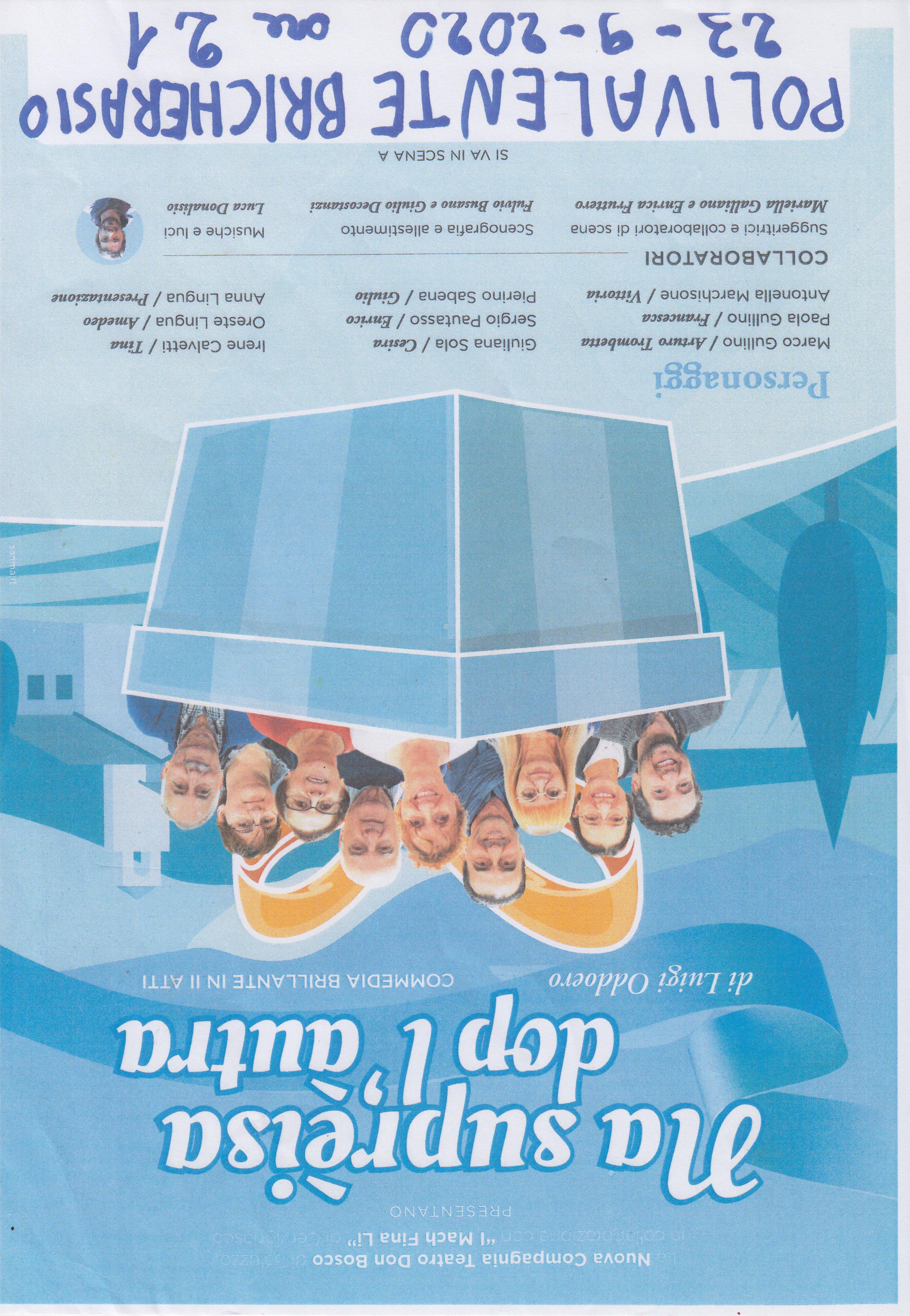 All'interno delle manifestazioni della 52^ Sagra dell'Uva bricherasiese mercoledì 23 settembre alle ore 21.00 prevista la Compagnia teatrale saluzzese “Don Bosco” che presenta lo spettacolo “Na surpreisa dop l’autra”, commedia dialettale piemontese di Luigi Oddoero. Presso il Salone Polivalente. Ingresso € 8.00. A cura della Pro Loco di Bricherasio.