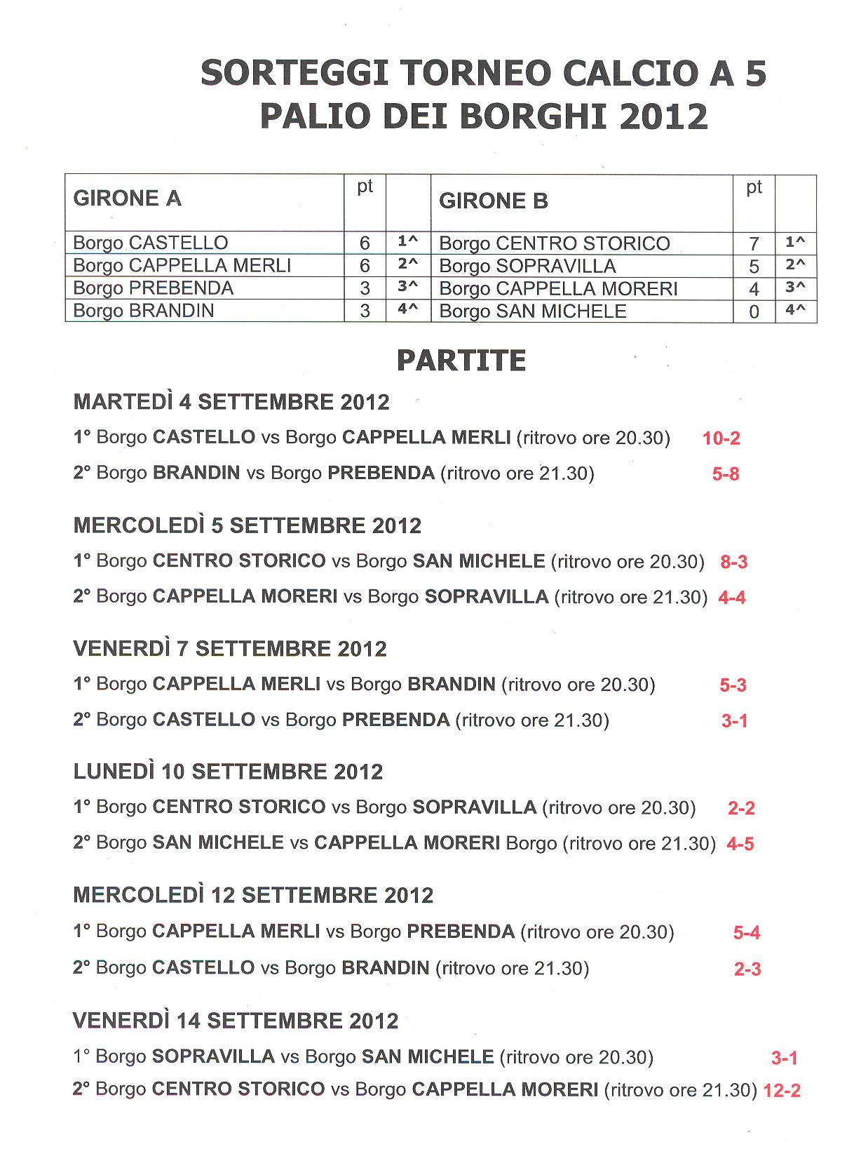 Il borgo vincitore, nonché il borgo che ha raggiunto il punteggio complessivo maggiore, sarà proclamato la Domenica pomeriggio, conclusiva della Sagra dell’Uva.