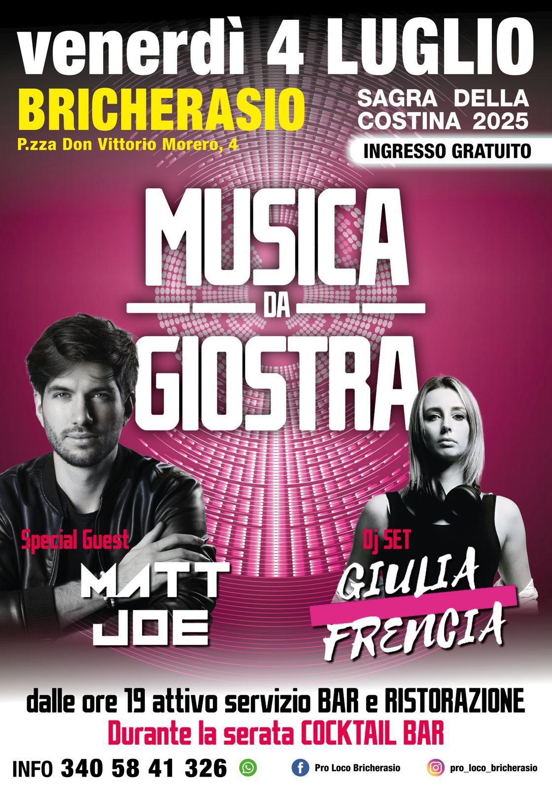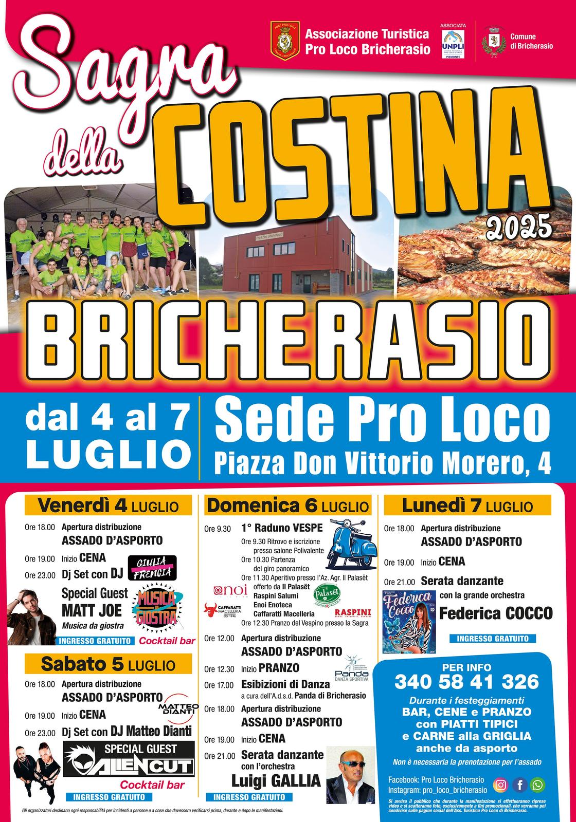 Dal 4 al 7 Luglio vi aspettiamo alla sede della ProLoco di Bricherasio per gustare prelibatezze e divertirci insieme!!!🍟🥩🍷🍴