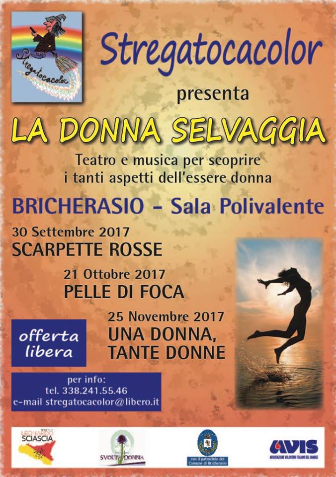 L'Associazione Leonardo Sciascia in collaborazione con Svolta Donna presenta lo spettacolo teatrale "Scarpette rosse", primo spettacolo della trilogia della donna selvaggia a cura dell'Associazione Stregatocacolor. Teatro e musica per scoprire i tanti aspetti dell'essere donna. Appuntamento alle ore 21 di sabato 30 settembre al Salone Polivalente di Piazza Don Morero. Ingresso ad offerta libera. Per maggiori informazioni tel. 338/2415546.