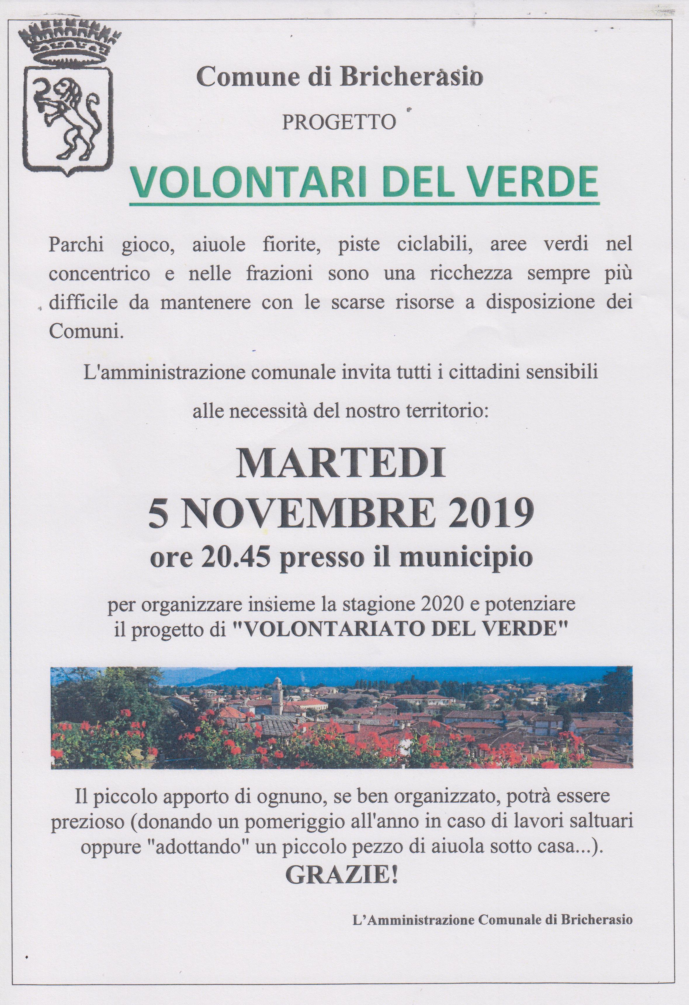 Il Comune di Bricherasio nell'ambito del progetto “Volontari comunali del verde” organizza martedì 5 novembre alle ore 20,45 in municipio un momento di incontro aperto a tutti per organizzare insieme la stagione 2020, potenziare il progetto e continuare l’attività per la manutenzione e l’abbellimento delle aree verdi del territorio. Parchi gioco, aiuole fiorite, piste ciclabili, aree verdi nel concentrico e nelle frazioni sono una ricchezza sempre più difficile da mantenere con le scarse risorse a disposizione delle Amministrazioni Comunali. Il piano di lavoro non si sostituisce all’attività ordinaria di pulizia del paese, ma deve essere un carburante efficiente a mettere in moto il coinvolgimento, a far sentire alla collettività lo scatto etico di cittadini che si mettono all’opera, a mantenere pulito il paese. Al senso civico che difetta in chi preferisce assegnare al vento la carta delle caramelle, i mozziconi e i fazzoletti usati piuttosto che gettarli nel cestino, si può rispondere con l’educazione e l’impegno di ciascuno.