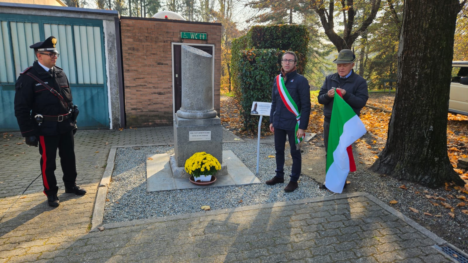 Inaugurato a novembre 2025 il nuovo monumento realizzato presso il Viale della Rimembranza dal gruppo alpini di Bricherasio a ricordo di tutte le "vite spezzate"