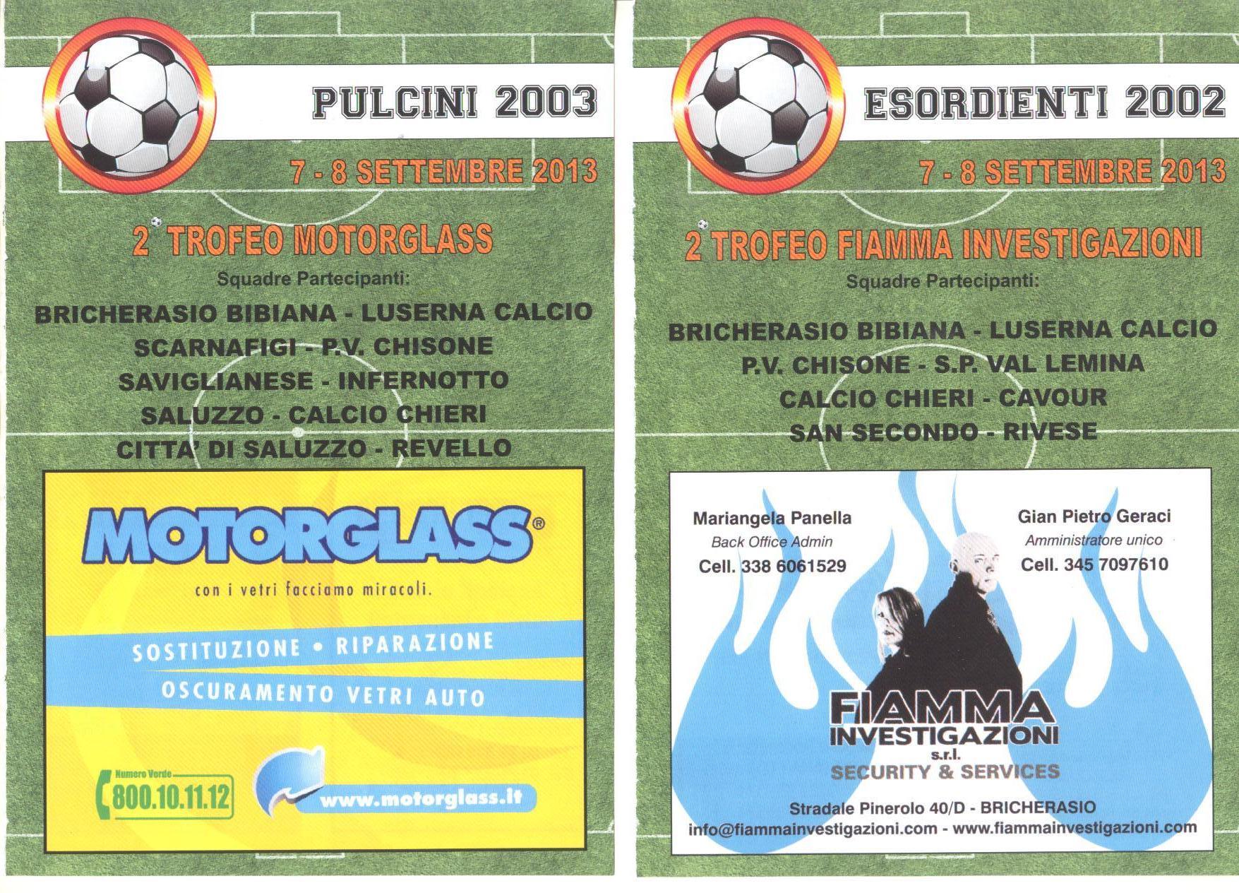 Il torneo giovanile di calcio “Comune di Bricherasio” in programma sabato 7 e Domenica 8 settembre per le categorie Pulcini ed Esordienti da 23 anni apre la stagione calcistica pinerolese. La società Bricherasio/Bibiana, da oltre quattro lustri organizza questo tradizionale ritrovo di giovani calciatori, inserisce la manifestazione nel programma della 45^ Sagra dell’Uva dove gli ingredienti essenziali sono entusiasmo e voglia di partecipare. Per i Pulcini 2004 a 6 giocatori le dieci squadre partecipanti sono con la società organizzatrice Bricherasio/Bibiana Luserna, Progetto Val Chisone, Saviglianese, Castagnole Pancalieri, Val Varaita, Moncalieri, Calcio Chieri, Roletto Val Noce e Rivese e si giocano il primo trofeo Ottica Noia. I Pulcini 2003 a 7 disputano il secondo trofeo Motorglass e le compagini iscritte sono Luserna, Scarnafigi, Progetto Val Chisone, Infernotto, Saviglianese, Saluzzo, Revello, Città di Saluzzo e Calcio Chieri. Entrambe le categorie dei Pulcini si sfidano sul campo di Via San Vincenzo a Bibiana. Al Calleri di Sala di Bricherasio competono per il secondo trofeo Fiamma Investigazioni gli Esordienti 2002 a 9 e con i padroni di casa del Bricherasio-Bibiana infilano le scarpette bullonate Luserna, Progetto Val Chisone, Calcio Chieri, Rivese, San Secondo, San Pietro Val Lemina, Cavour. Calcio d’inizio alle ore 15.