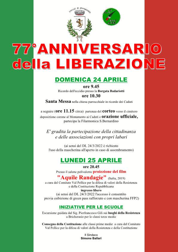 Buon 25 Aprile da parte dell'amministrazione comunale di Bricherasio.