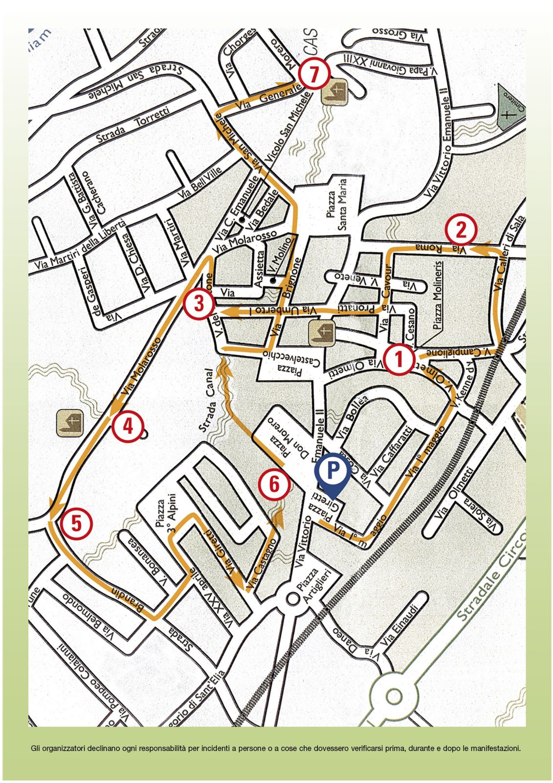 La 27° “Mangia e cammina”, la nota passeggiata gastronomica di circa 4 km fra i filari e le verdi colline a cura della locale Proloco in collaborazione con il Comune di Bricherasio si svolge Domenica 3 settembre. La macchina organizzativa parte dalle iscrizioni che si ricevono esclusivamente all'Ufficio Turistico di Piazza Santa Maria, 20 a partire da lunedì 28 agosto dalle ore 16 alle 22 proseguono martedì 29,mercoledì 30 e venerdì 1 settembre alla stessa ora. Giovedì 31 oltre all'orario pomeridiano le adesioni si ricevono anche la mattina dalle ore 10 alle 12 come sabato 2 settembre dove nel pomeriggio l'ufficio turistico sarà aperto dalle 14 alle 18. La quota è fissata in € 26, ridotta per i ragazzi dai 5 ai 10 anni ad € 13. I bambini di età inferiore non pagano. Il pagamento può essere fatto all'atto dell'iscrizione oppure a mezzo bonifico bancario sull'iban IT83Y0200830150000004557636 intestato all'associazione Turistica Pro Loco con carta di credito o bancomat o satispay. Si parte da Piazza Giretti con la Pro Loco protagonista in tutte e sette le tappe e si arriva al peso comunale di Via Campiglione per l'aperitivo proposto in collaborazione con L'Appetito di Vale & Livi. Si passeggia fino a Villa Calleri per il primo antipasto nel parco a cura dell'Agrimacelleria Da Giulia mentre il secondo antipasto è gestito dalla macelleria Caffaratti all'Oratorio San Domenico Savio di Via del Portone. La Cascina San Giorgio ospita nella propria sede di Via Molarosso i primi piatti. All'incrocio con Strada Brandin si assapora il sorbetto de La Sorbetteria e dopo si scende alla sede della Pro Loco in Piazza Don Morero per costine, salsiccia e patatine cucinate dai volontari della storica associazione bricherasiese prima di salire al Castello (in foto un momento della passata edizione) del paese per frutta, dessert e caffè con l'Azienda Agricola Il Palaset e tanta musica con Yvonne Ramirez Acosta e Franco Falcetto. Ritrovo in Piazza Giretti alle ore 10,30 e partenza del primo gruppo prevista alle 11,15.