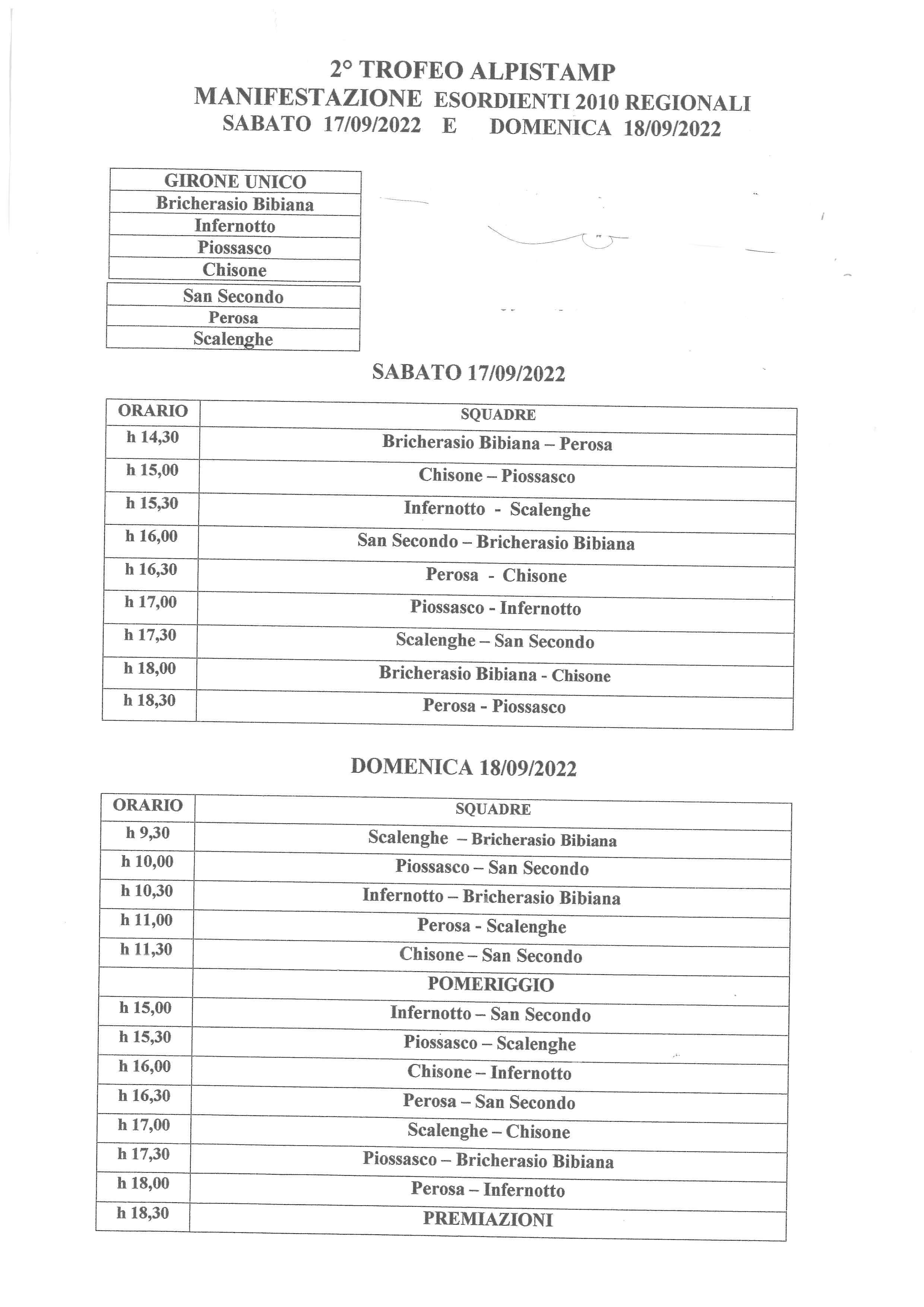 Anche il fine settimana del 17 e 18 settembre Bricherasio sarà invasa da piccoli calciatori e calciatrici che si contendono la la 31^ edizione del torneo giovanile Comune di Bricherasio organizzato dalla locale Associazione Bricherasio Bibiana nell’ambito della Sagra dell’Uva nelle categorie esordienti 2010 e Primi Calcio 2014/15. Diverse le modalità di svolgimento dei due tornei, i più piccoli si sfidano in due giorni da quattro squadre per contendersi il 10' Trofeo Cristal con la composizione dei nuovi gruppi già stabilita. Gli ospitanti del Bricherasio Bibiana con San Pietro Val Lemina, Morevilla, Marene, Luserna, Cumiana, San Secondo e Academy Soccer Piscinese Riva calpestano il sintetico degli impianti sportivi e disputano gli incontri a cinque giocatori. Le sette squadre partecipanti al 2^ Trofeo Alpistamp degli Esordienti dell’anno 2010 si battono in un unico girone all’italiana per stabilire la compagine vincitrice tra i padroni di casa del Bricherasio Bibiana, Infernotto, Piossasco, Chisone, San Secondo, Perosa e Scalenghe e disputano le partite a nove giocatori sul campo “ Calleri di Sala” lievemente ridotto ai limiti delle aree.