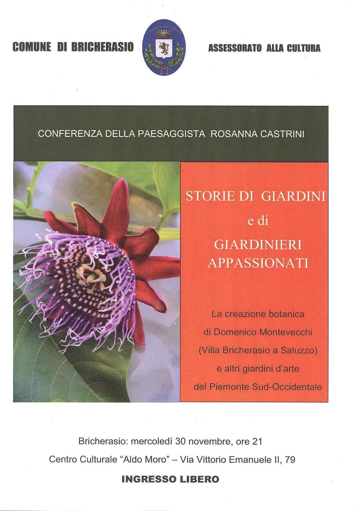 , presso il Centro Culturale “Aldo Moro” (Via Vittorio Emanuele II n. 79), conferenza della paesaggista Rosanna Castrini su alcuni interessanti giardini, per lo più inediti o sconosciuti, presenti tra pinerolese e saluzzese.