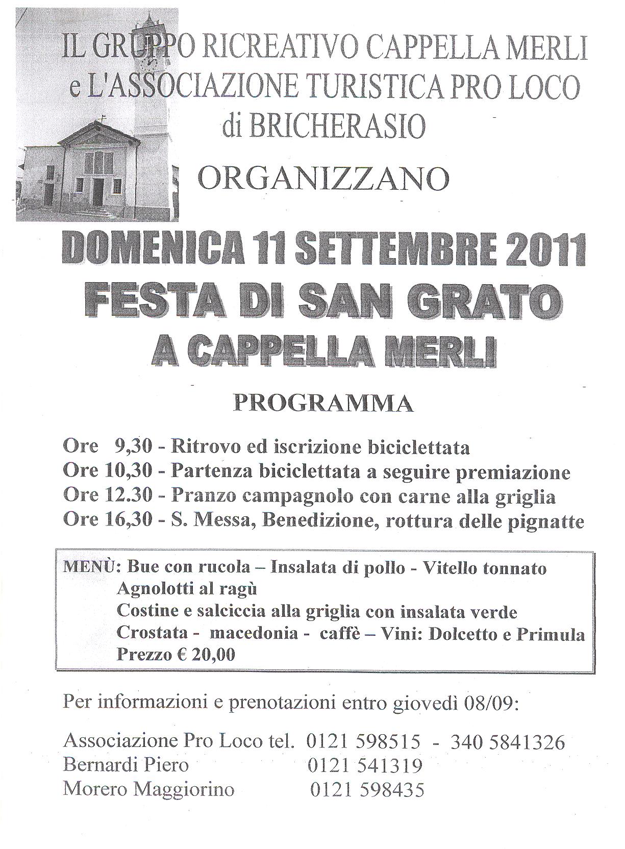 Festa di San Grato a Cappella Merli con biciclettata, pranzo campagnolo e Santa Messa