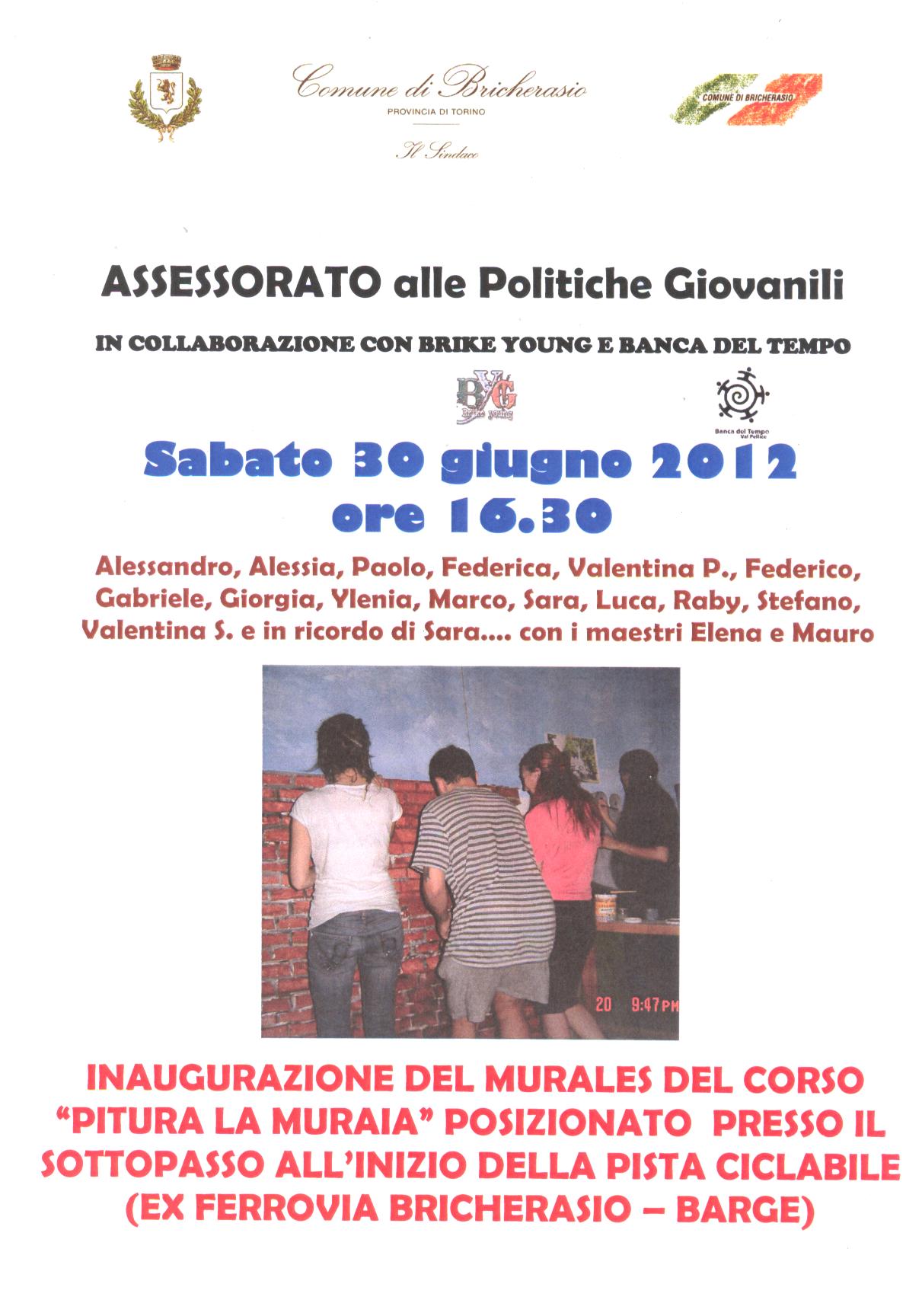 Geniale l’idea dei ragazzi di Brike young di fare un murales a Bricherasio e con la collaborazione di Comune e Banca del Tempo si è concretizzata. Da circa due mesi Alessandro, Alessia, Paolo, Federica, Valentina P., Federico, Gabriele, Giorgia, Ilenia, Valentina S., Marco, Sara G., Luca, Raby e Stefano si sono visti ogni settimana, all’inizio con Sara B., alla quale và un affettuoso ricordo, per creare il dipinto. Hanno lavorato sodo seguendo le indicazioni dei maestri Elena e Mauro. Gli artisti hanno dipinto dei simboli di Bricherasio che saranno svelati sabato 30 alle 16.30. Lo spettacolare lavoro è posizionato sotto il ponte che dà inizio alla pista ciclabile Bricherasio-Campiglione sulla ex ferrovia Bricherasio-Barge. I giovani di “Pitura la muraia” si sono trovati al Centro Culturale verso la fine di maggio per decidere cosa dipingere e dopo si sono trasferiti in piazza per imbiancare i pannelli infine nel cortile del Comune per realizzare l’opera al riparo dagli occhi dei curiosi. Ora l’inaugurazione.