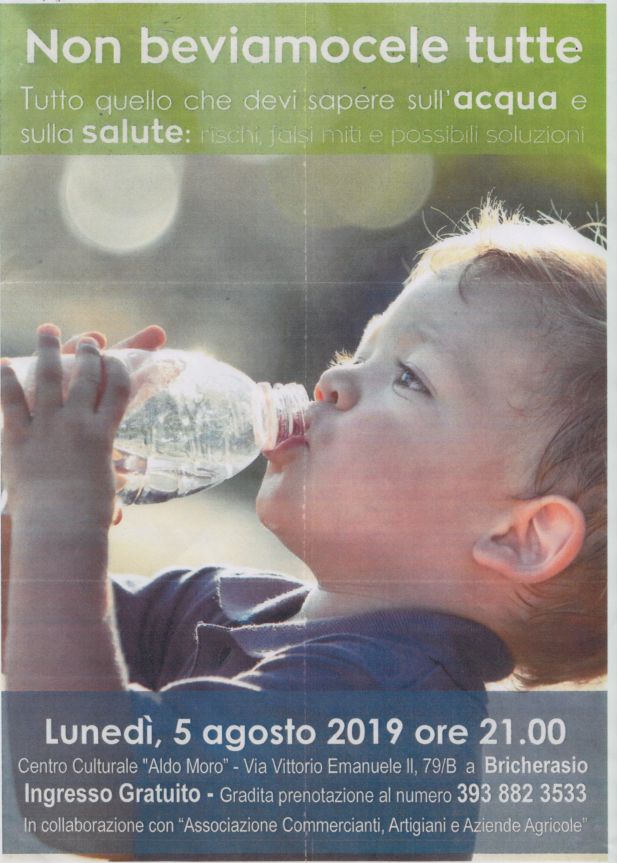 “Non beviamocele tutte” è il titolo scelto per la serata informativa che si svolge lunedì 5 agosto alle ore 21 al “Centro Culturale Aldo Moro” di Via Vittorio Emanuele II, 79/B a Bricherasio promossa da un gruppo di consumatori di Bricherasio e Campiglione Fenile con la collaborazione dell’Associazione Commercianti, Artigiani e Aziende Agricole bricherasiese. Massimo Beccari, uno degli organizzatori dichiara “Vogliamo offrire suggerimenti ed informazioni sull’acqua che beviamo dal rubinetto, tutto quello che c’è da sapere sull’acqua e sulla salute, i rischi che si corrono senza allarmare nessuno, sfatare falsi miti e offrire possibili soluzioni”. Ancora Beccari approfondisce il discorso “Poiché le sorgenti naturali di acqua potabile vanno esaurendosi gradualmente, oggi si ricorre sempre più all’uso di acqua di fiumi, laghi e mari: è questo il motivo per cui tali acque devono essere necessariamente sottoposte a specifici tipi di trattamenti che possano renderle potabili. Nonostante l’acqua grezza venga trattata alla fonte da appositi impianti filtranti, questi non riescono a rendere l’acqua del rubinetto pura come quella in bottiglia, per questo oggi in molte case sono presenti anche i depuratori domestici”, che conclude la disamina affermando “I processi di depurazione e pulizia dell’acqua dovrebbero essere effettuati sempre alla fonte, eppure non sempre l’acqua del rubinetto risulta abbastanza pura e nutriente per il nostro organismo, in tal caso è possibile intervenire proprio scegliendo di installare depuratori domestici. I depuratori danno non solo la possibilità di ottenere acqua realmente pura e dalle qualità molto simili a quelle dell’acqua in bottiglia, ma anche di risparmiare sul costo delle bottiglie di acqua minerale che si acquisterebbero in alternativa. Specifico che vogliamo portare a conoscenza di chi interverrà dell'esistenza del prodotto e come reperirlo ma verrà fatto tutto successivamente per chi è interessato”. Gradita la prentazione al numero 393/8823533.