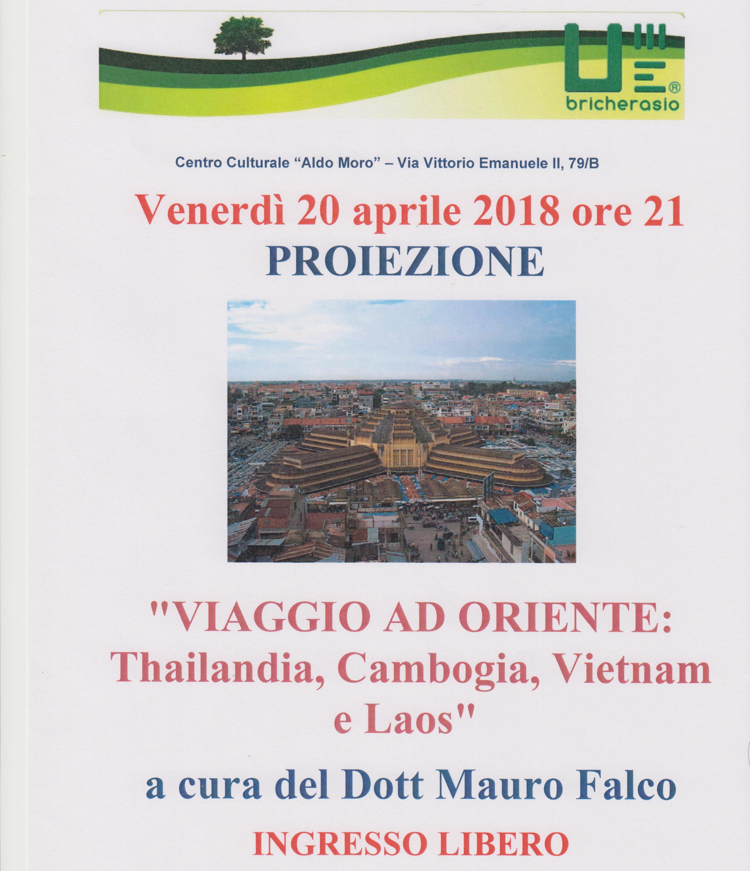 All’Unitre di Bricherasio “Viaggio ad Oriente” con Thailandia, Cambogia, Vietnam e Laos. Immagini e racconti di viaggio a cura di Mauro Falco. Appuntamento per venerdì 20 aprile alle ore 21 al Centro Culturale “Aldo Moro” di Via Vittorio Emanuele II, 97. Ingresso libero.