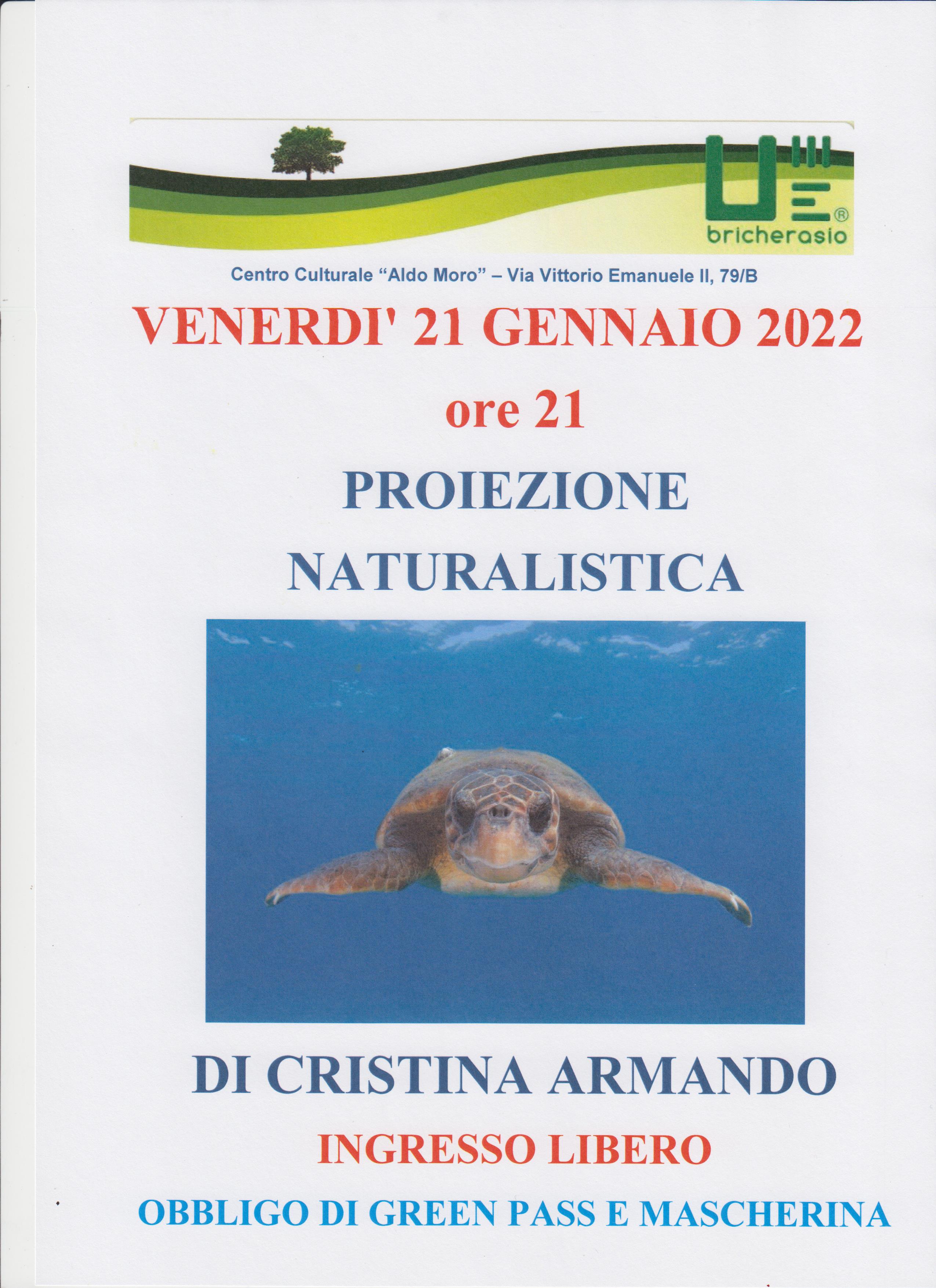 Cristina Armando presenta all'Unitre di Bricherasio venerdì 21 gennaio alle ore 21 al Centro Culturale “Aldo Moro” di Via Vittorio Emanuele II, 79/B la proiezione naturalistica di diapositive e filmati. Ingresso libero con obbligo di green pass e mascherina