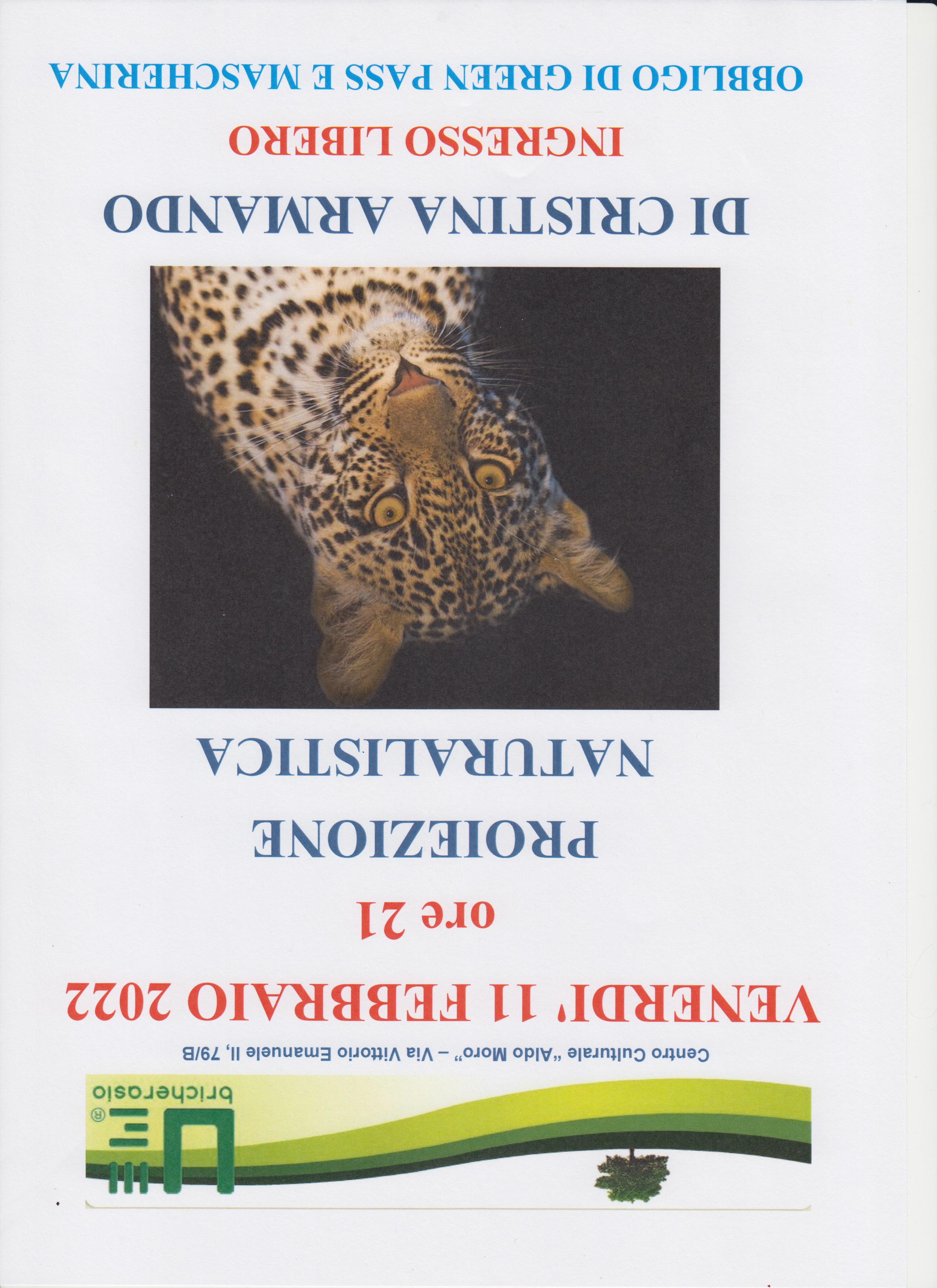 Cristina Armando presenta all'Unitre di Bricherasio venerdì 11 febbraio alle ore 21 al Centro Culturale “Aldo Moro” di Via Vittorio Emanuele II, 79/B la seconda proiezione naturalistica di diapositive e filmati. Ingresso libero con obbligo di green pass e mascherina