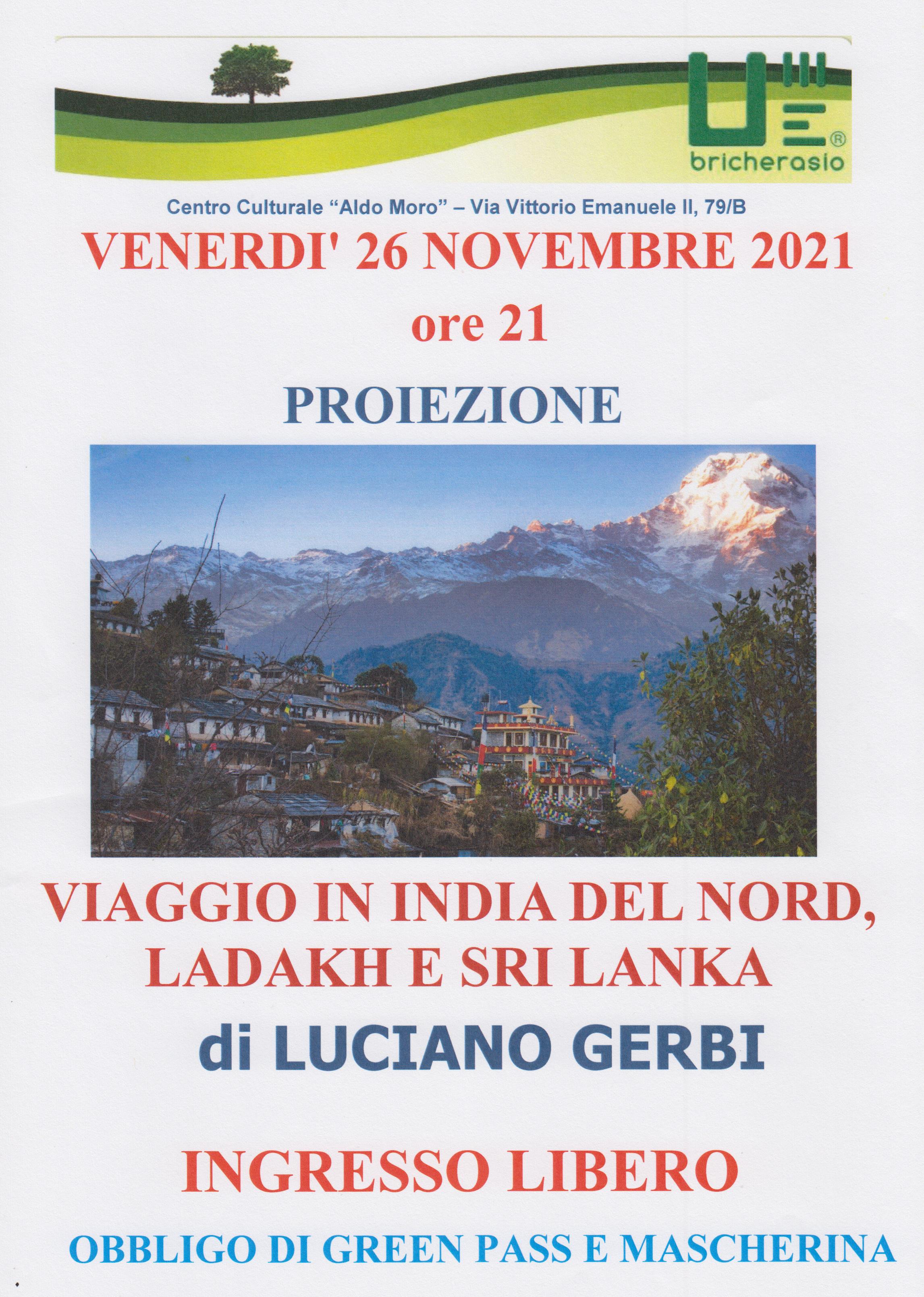 Luciano Gerbi presenta all'Unitre venerdì 26 novembre alle ore 21 al Centro Culturale “Aldo Moro” di Via Vittorio Emanuele II, 79/B la proiezione di diapositive e filmati sull'India del Nord, Ladakh e Sri Lanka. Ingresso libero con obbligo di green pass e mascherina