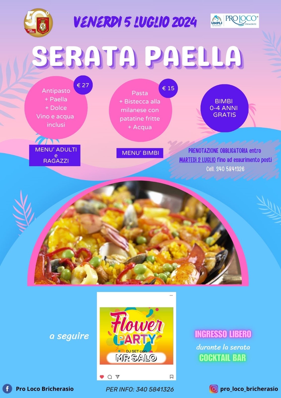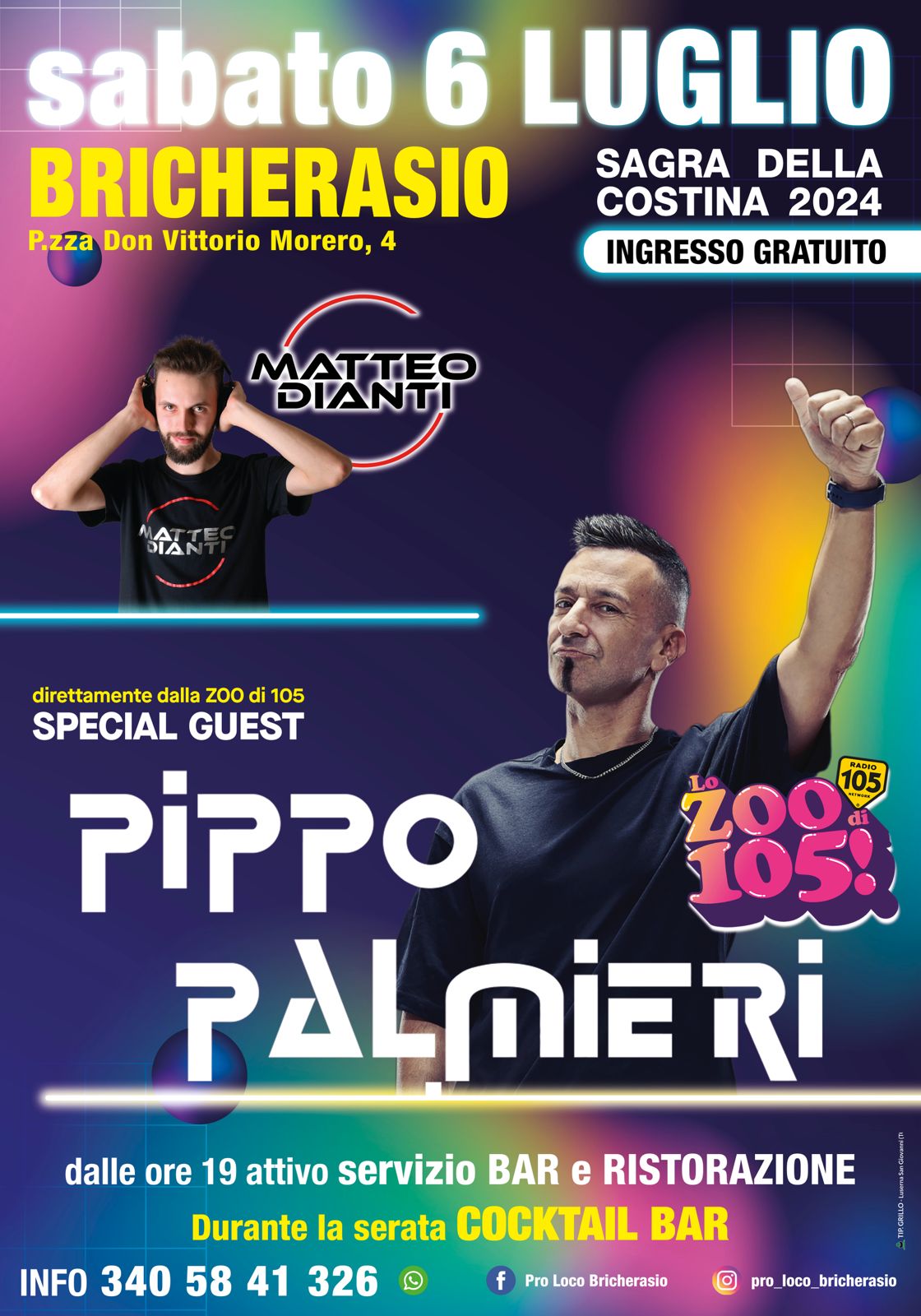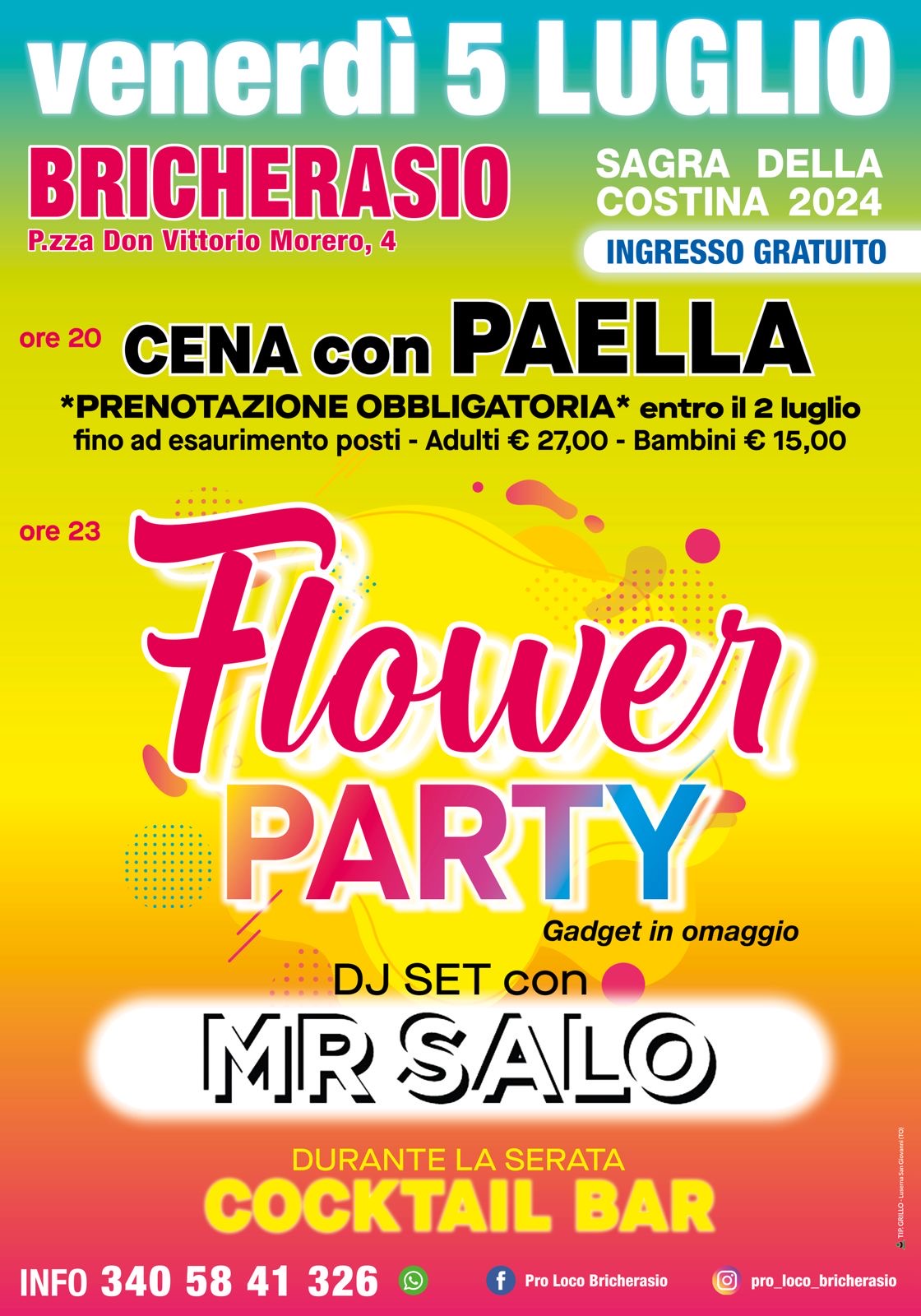 Sta tornando la tanto attesa Sagra della costina di Bricherasio da venerdì 5 a martedì 9 luglio, presso la sede della Pro Loco di Bricherasio. Come sempre lo staff della Pro Loco di Bricherasio aspetta numerose persone per divertirsi, mangiare e bere assieme. Tutte le sere dalle ore 18.30 possibilità di mangiare in loco oppure d'asporto presso lo stand in Piazza Don Morero, 4 a Bricherasio. La manifestazione, giunta a quasi cinquanta edizioni, divenuta la più importante dell’estate bricherasiese con centinaia di persone coinvolte per cinque giornate, durante le quali si cuociono montagne di costine, patatine, agnolotti, antipasti vari, dolci... il tutto accompagnato dalla musica di rinomate orchestre ed eventi musicali per i più giovani. Per informazioni telefonare al numero 3405841326.