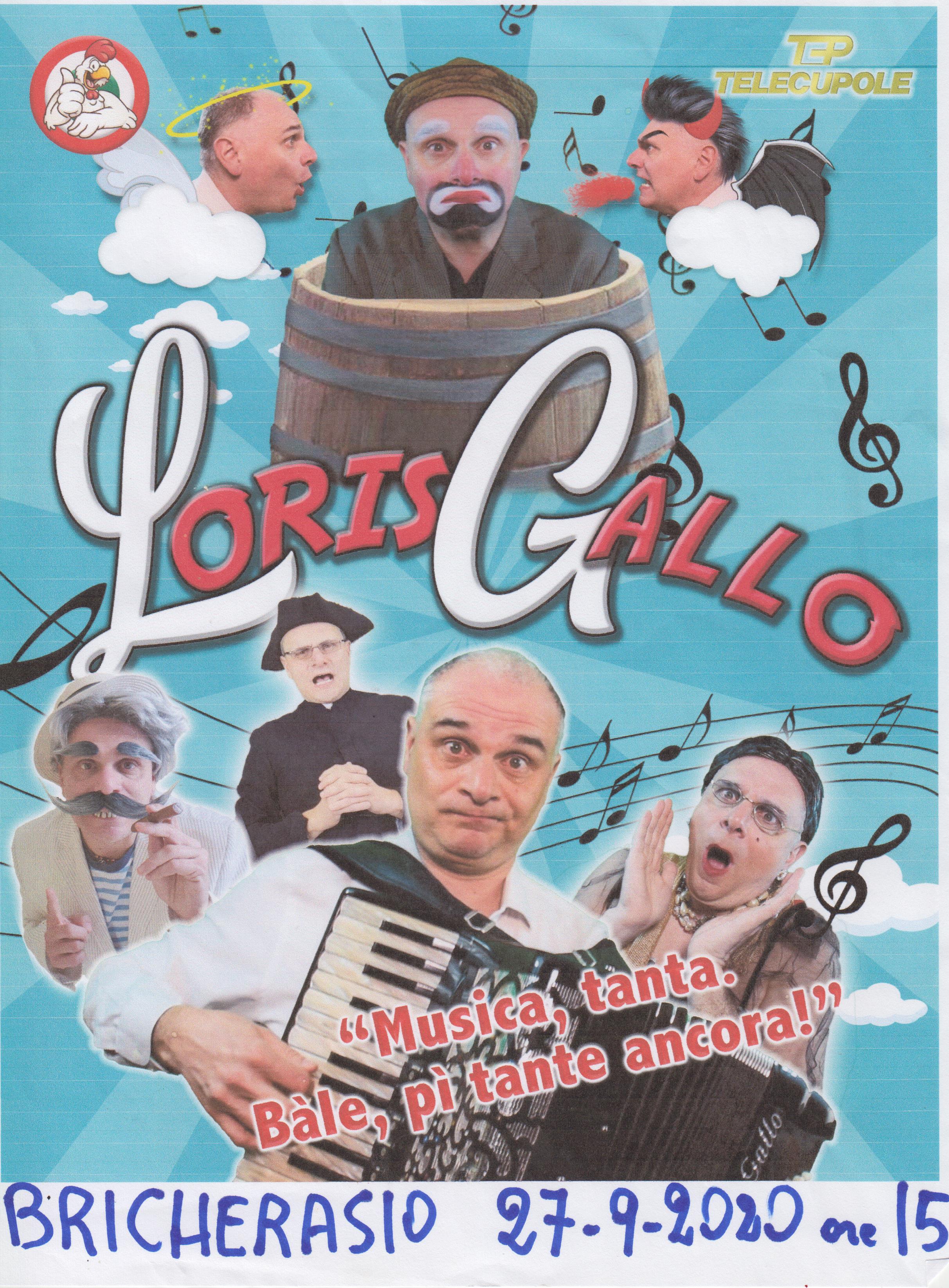 Domenica 27 settembre a partire dalle ore 15.00 spettacolo di cabaret di Loris Gallo in Piazza Santa Maria, a Bricherasio presentato dalla Pro Loco con ingresso libero. L'appuntamento rientra nei festeggiamenti della 52^ Sagra dell'Uva bricherasiese.