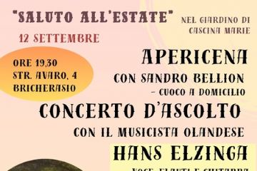 Venerdì 12 alle 19,30 aperIcena con Sandro Bellion ed il concerto di Hans Elzingh proposta da Cascina Marie nel proprio giardino, in Strada Avaro, 4 nella frazione di Cappella Merli.