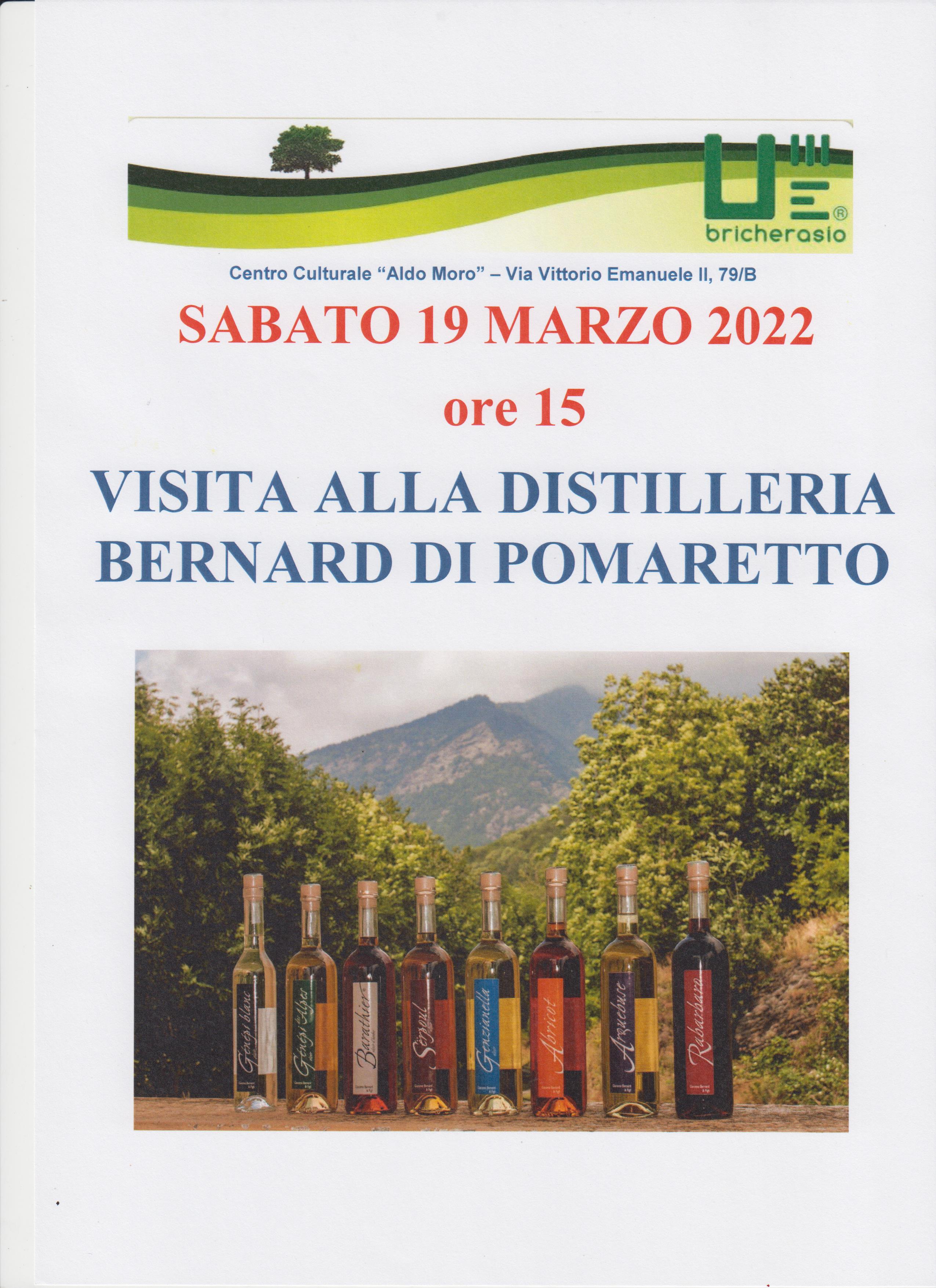 L'Unitre di Bricherasio organizza per sabato 19 marzo la visita pomeridiana alla Distillleria Bernard di Pomaretto