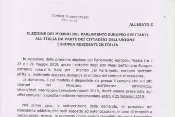 Elezioni europee. Comunicazione della Prefettura circa l'esercizio del diritto di voto per i cittadini di alcuni altri paesi europei residenti in Italia presso i seggi allestiti dalle autorità...