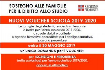 Le famiglie piemontesi hanno tempo dal 18 aprile al 30 maggio per presentare la domanda per il nuovo voucher scuola 2019-2020, il ticket virtuale...