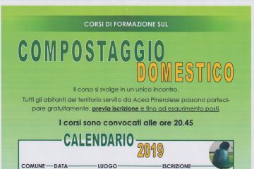 Calendario corsi compostaggio ACEA 2019, in programma nei mesi di aprile, maggio e giugno presso vari comuni del bacino ACEA ed aperti, previa iscrizione, a tutti i cittadini dell'area pinerolese.