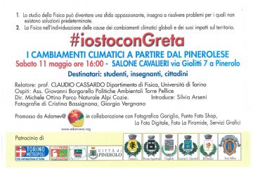 Tavola rotonda sui cambiamenti climatici a partire dal pinerolese per sabato 11 maggio alle ore 16 al Salone Cavalieri di Via Giolitti, 7 a Pinerolo