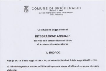 Sono aperte le procedure per nuovi inserimenti nell'Albo scrutatori del Comune. Rivolgersi entro fine novembre presso l'ufficio anagrafe.