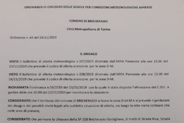 Lunedì 25/11/2019 le scuole dell'IC Caffaro sul territorio di Bricherasio, Bibiana e Campiglione (dell'infanzia, primaria e secondaria di 1°grado) resteranno chiuse a causa del perdurare...