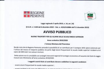 L'Unione Montana del Pinerolese informa che la Regione Piemonte ha indetto un bando per l'erogazione di un contributo per il sostegno delle spese...