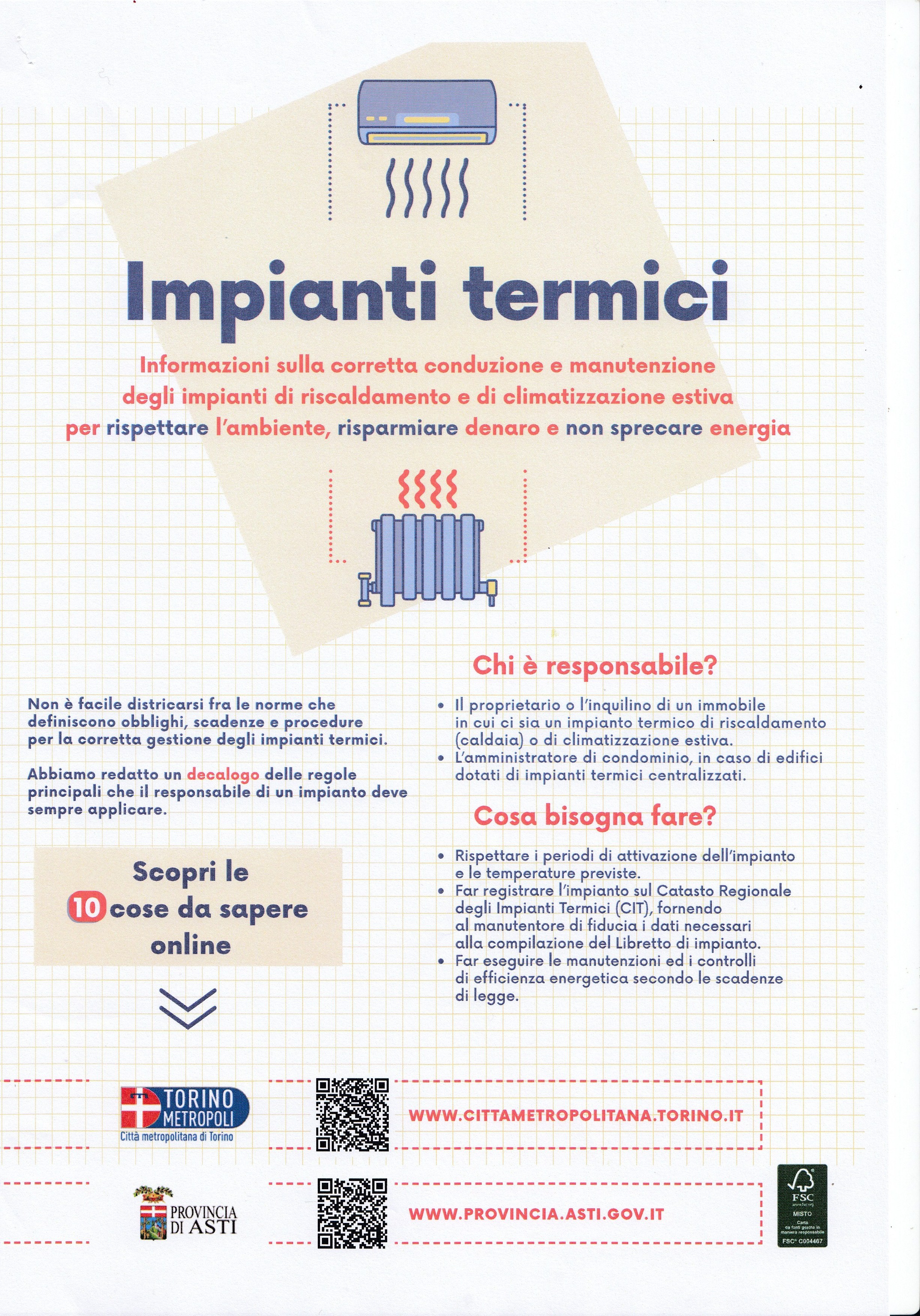 Campagna informativa sulla corretta conduzione e manutenzione degli impianti di riscaldamento e di climatizzazione, a cura della Città Metropolitana di Torino.