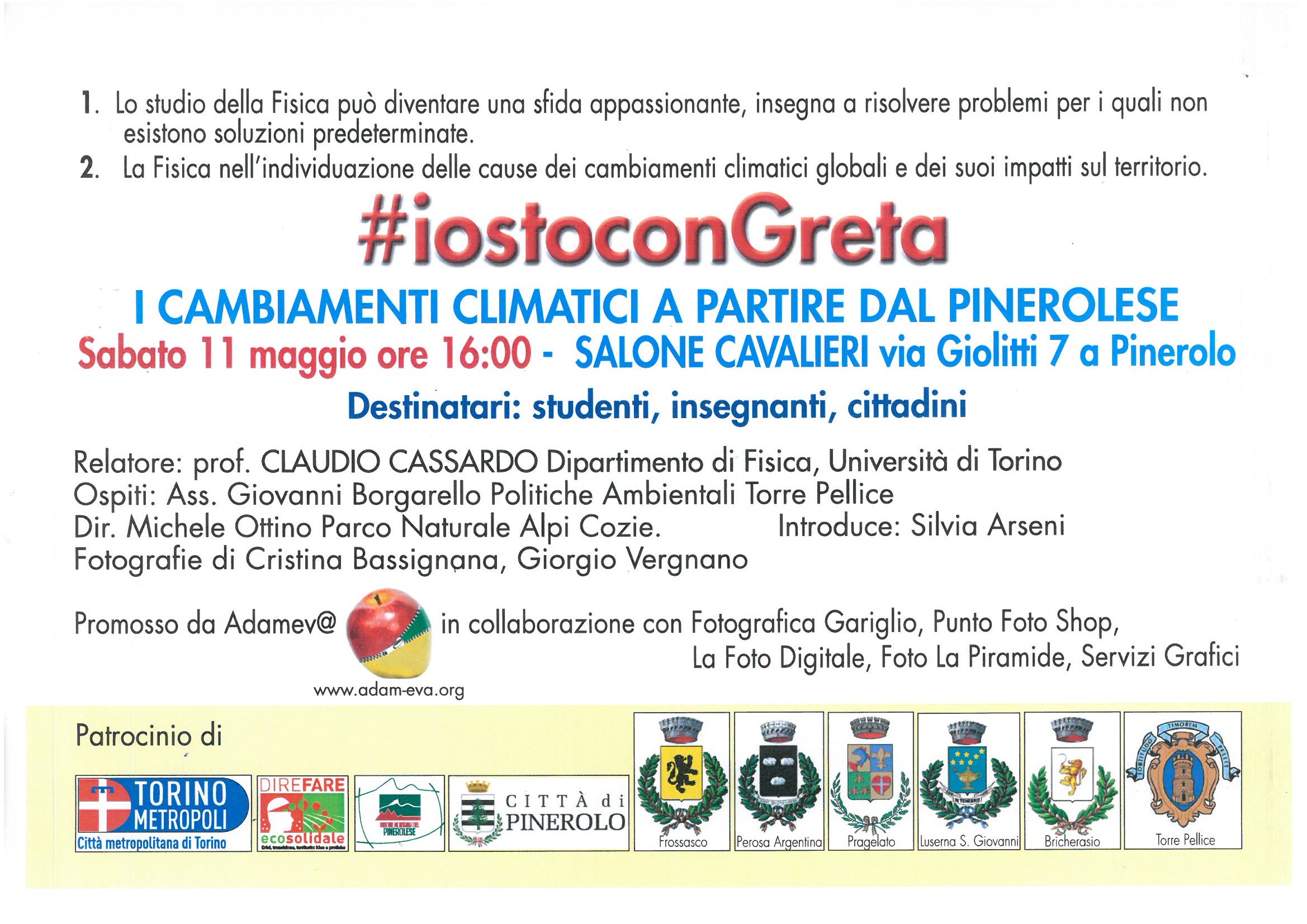Tavola rotonda sui cambiamenti climatici a partire dal pinerolese per sabato 11 maggio alle ore 16 al Salone Cavalieri di Via Giolitti, 7 a Pinerolo