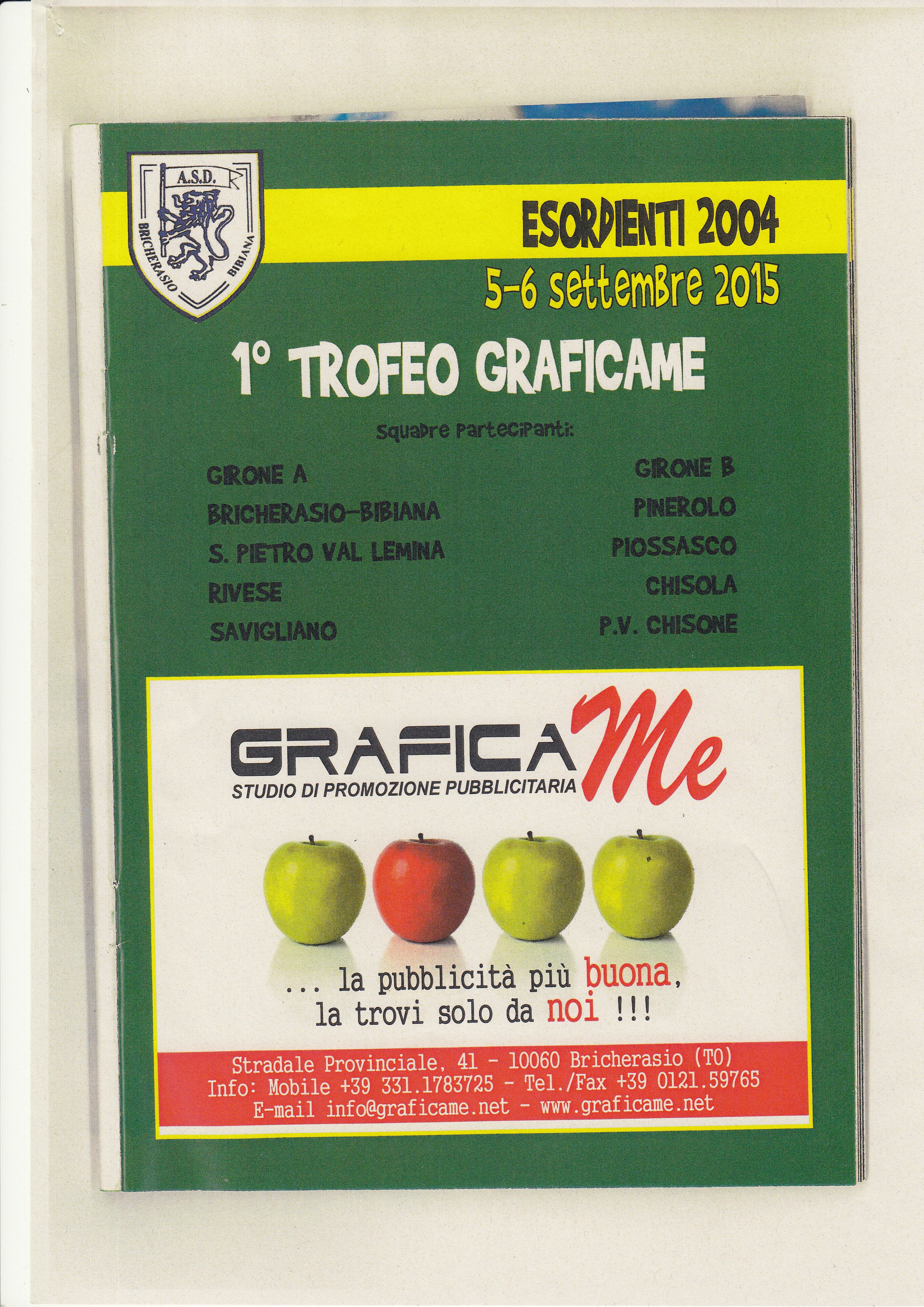 Il torneo giovanile di calcio “Comune di Bricherasio” in programma sabato 5 e Domenica 6 settembre per le categorie Piccoli Amici, Pulcini ed Esordienti festeggia le nozze d’argento. La società Bricherasio/Bibiana, da cinque lustri organizza questo tradizionale ritrovo di giovani calciatori e inserisce la manifestazione nel programma della 47^ Sagra dell’Uva bricherasiese. Per il 25 compleanno del torneo scendono sul campo “Guido Calleri di Sala” otto squadre dei Pulcini 2006 che si contendono il secondo Memorial Silvio Falco e sono divise in due gironi all’italiana e nel girone A ci sono Pinerolo Volvera, San Secondo, Savigliano e Olimpic Saluzzo. Nel B Infernotto, Progetto Val Chisone, Saluzzo e Scarnafigi si contendono la vittoria. Anche nei Pulcini 2005 le otto compagini sono suddivise in due gironi per il terzo Memorial Lorenzo Levetti. Nel primo girone la squadra ospitante del Bricherasio/Bibiana di Perro e Giaime gioca contro San Secondo, Savigliano Rosso e Saluzzo e nel secondo Savigliano Bianco, Perosa, Scarnafigi e Chisola. Due gironi da quattro compongono anche il tabellone delle squadre partecipanti alla categoria Esordienti 2004, Trofeo Grafica Me. I padroni di casa del Bricherasio/Bibiana allenati da Solera, Savigliano, Rivese e San Pietro compongono il primo girone e Progetto Val Chisone, Chisola, Pinerolo e Piossasco sono le squadre del secondo girone. Si parte alle ore 15.