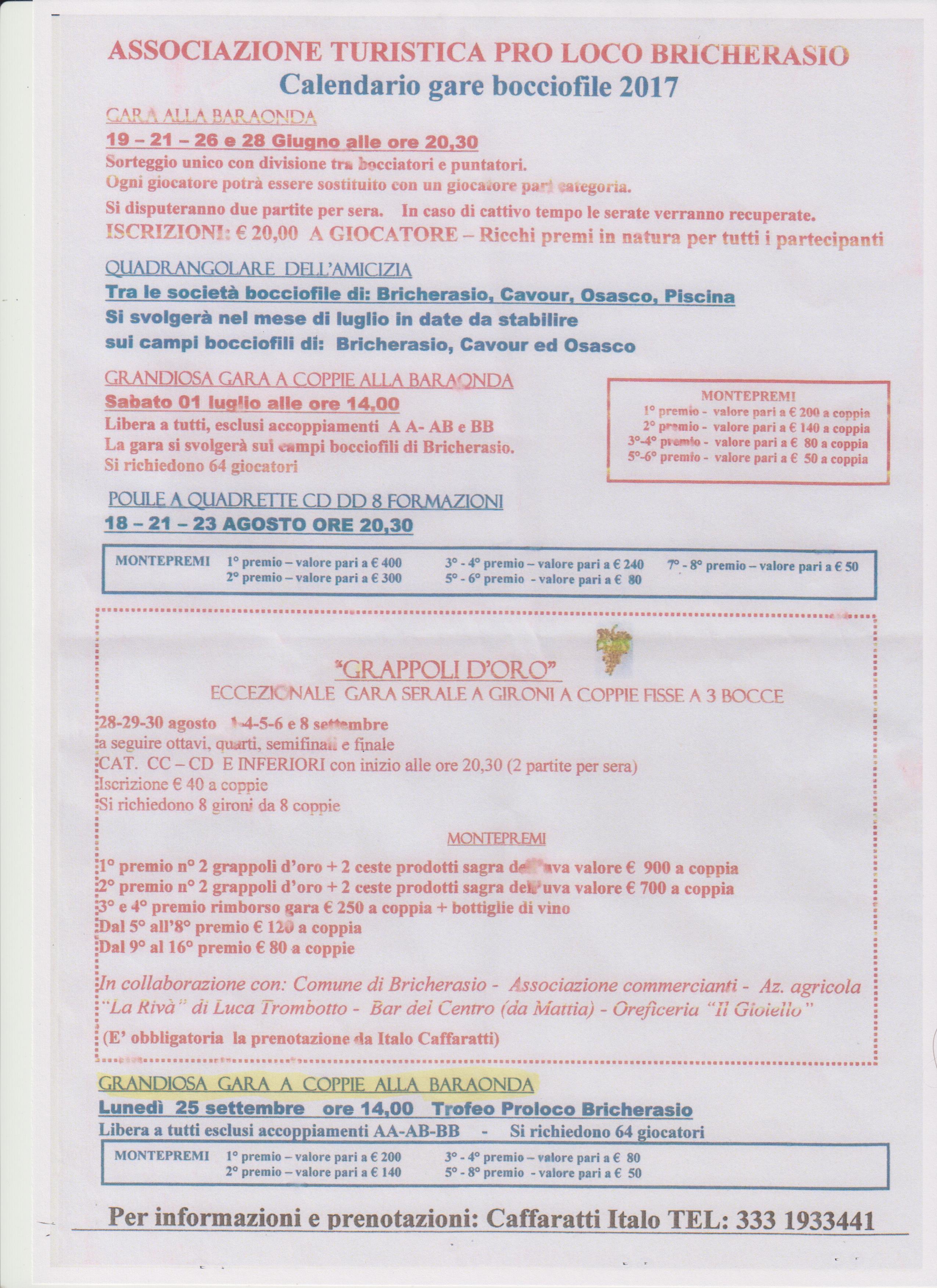 Per tutto il mese le associazioni promuovono gare sportive, spettacoli teatrali, concerti, serate di ballo e mostre (maggiori informazioni seguendo i link ai documenti seguenti). Sarà anche l'occasione per rinnovare il patto di amicizia con il Comune argentino di Bell Ville, nel 20° anniversario del gemellaggio con Bricherasio.