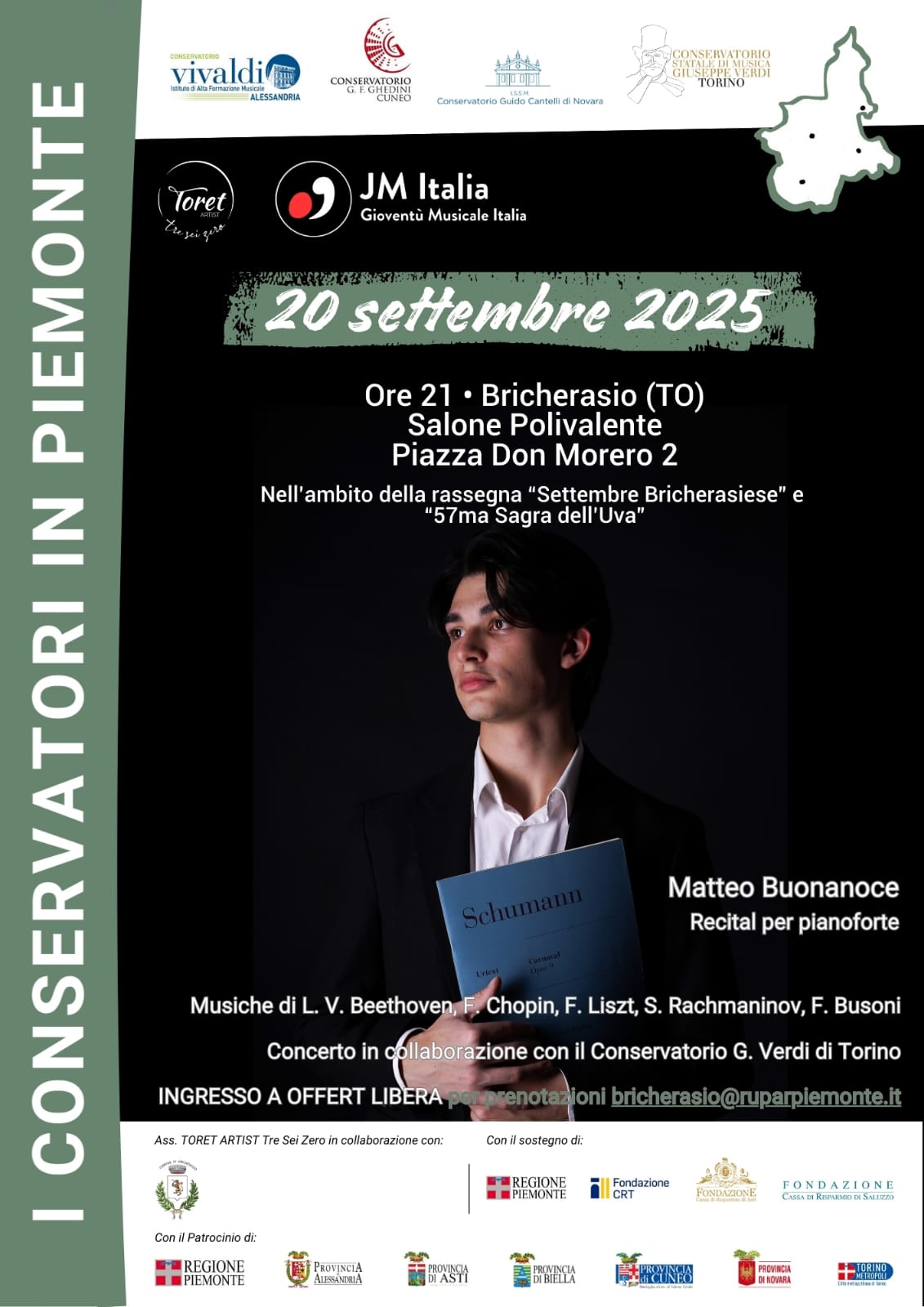 La Sagra dell'Uva di Bricherasio, nel più ampio contesto del "Settembre Bricherasiese" giunge nel 2025 alla sua 57° edizione. Al consueto ricco programma di eventi culturali, enogastronomici, musicali e sportivi si aggiunge quest'anno il ricordo dei 700 anni dalla fondazione della "Villanova" di Bricherasio, ovvero l'edificazione del nuovo abitato medievale, nella sede attuale, su iniziativa del principe Filippo d'Acaia. Gruppi, esibizioni, giochi e rievocazioni storiche a tema medievale arricchiranno così il lungo mese di settembre, da sempre dedicato alla festa per i prodotti della terra e per la vendemmia. Qui di seguito il programma completo, in graduale aggiornamento, e lelocandine specifiche dei vari eventi previsti.
