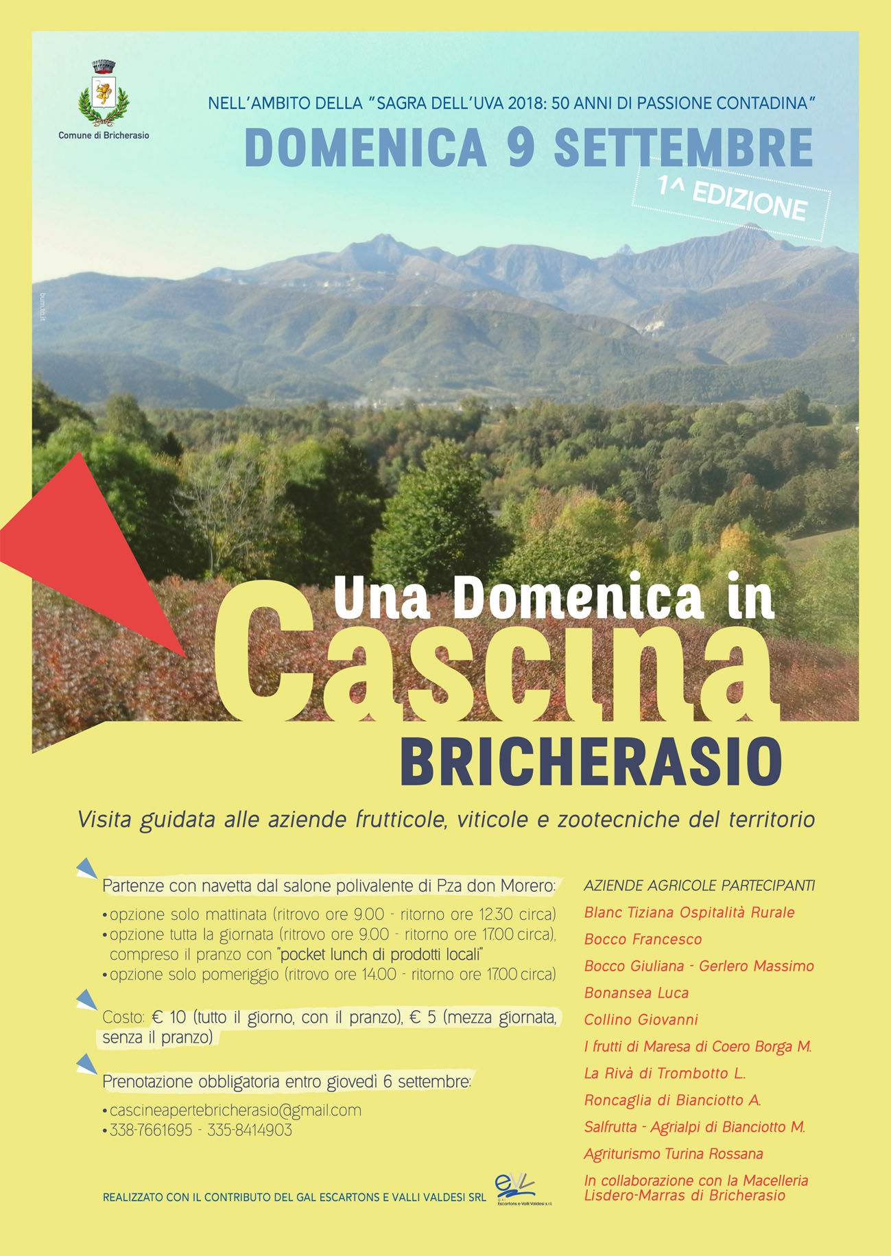 Prenotazione obbligatoria entro giovedì 6 settembre (cascineapertebricherasio@gmail.com, 338-7661695 - 335-8414903)