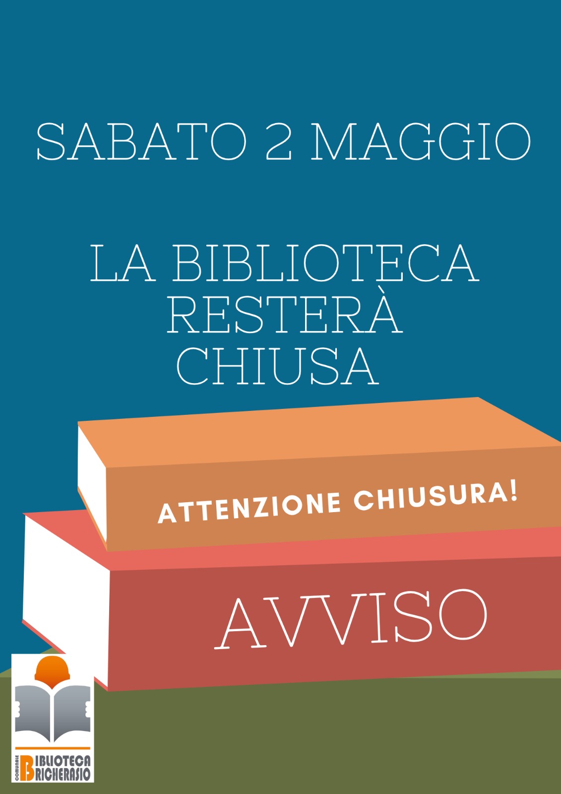 La biblioteca comunale di Via Vittorio Emanuele II, 79/b resta chiusa sabato 2 maggio