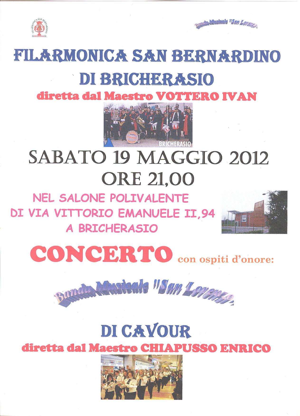 Concerto al Salone Polivalente della Filarmonica San Bernardino con ospiti d'onore la Banda Musicale San Lorenzo di Cavour